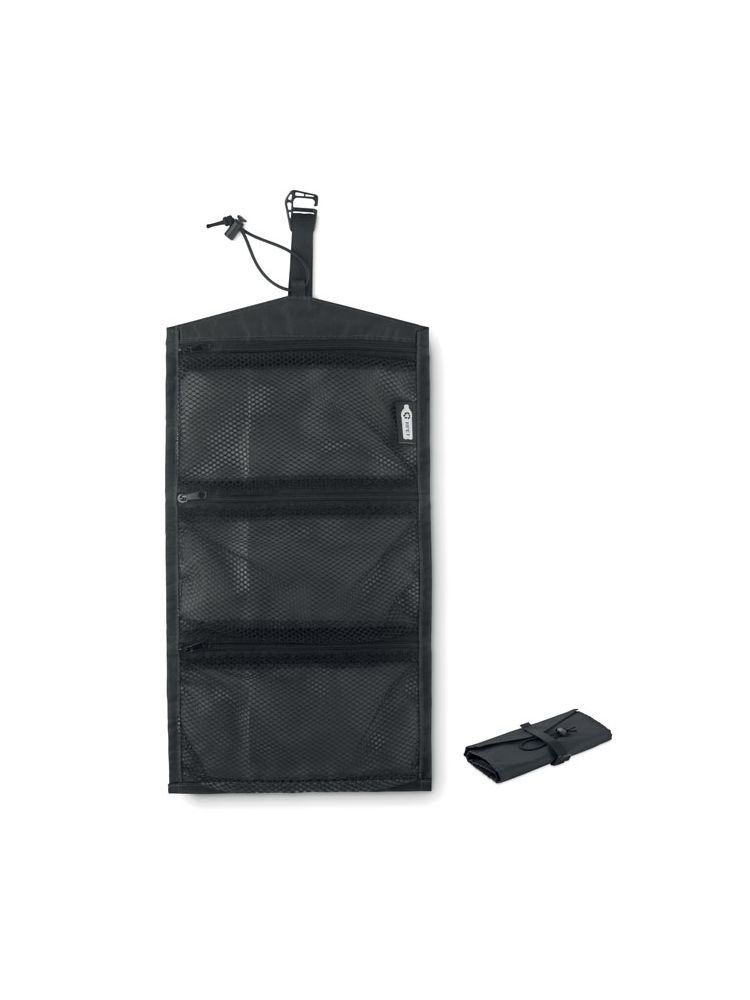 Organizer podróżny na kable z RPET 210D. Posiada siatkę RPET z 3 przegrodami zapinanymi na zamek błyskawiczny. Produkt może być również używany jako kosmetyczka.