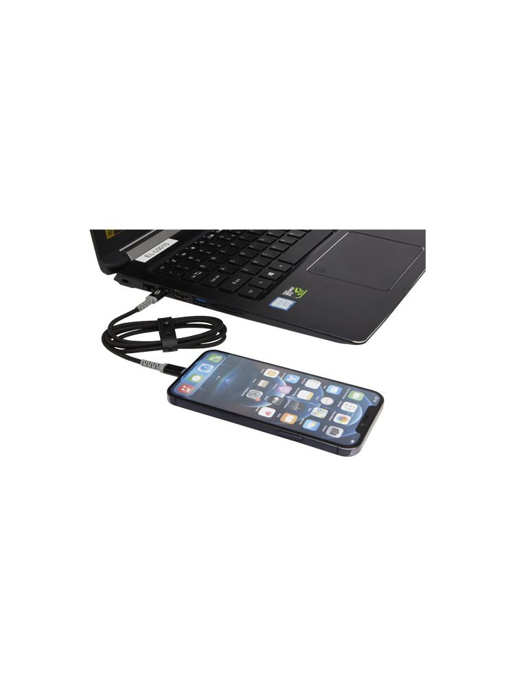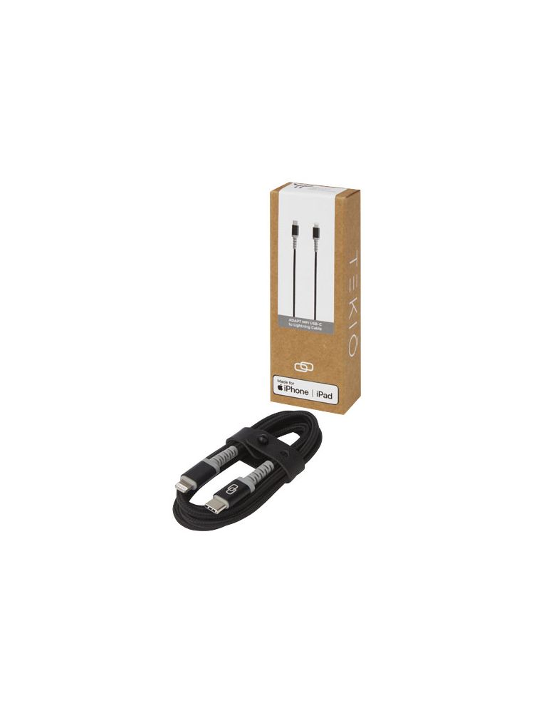 Stylowy i wysokiej jakości kabel Lightning z certyfikatem MFI opleciony nylonem. USB-C do Lightning, w tym wsparcie dla dostarczania prądu (PD) i transmisji danych. W zestawie opaska zaciskowa ułatwiająca organizację. Dostarczane w wysokiej jakości pudełku z papieru Kraft z kolorową naklejką.