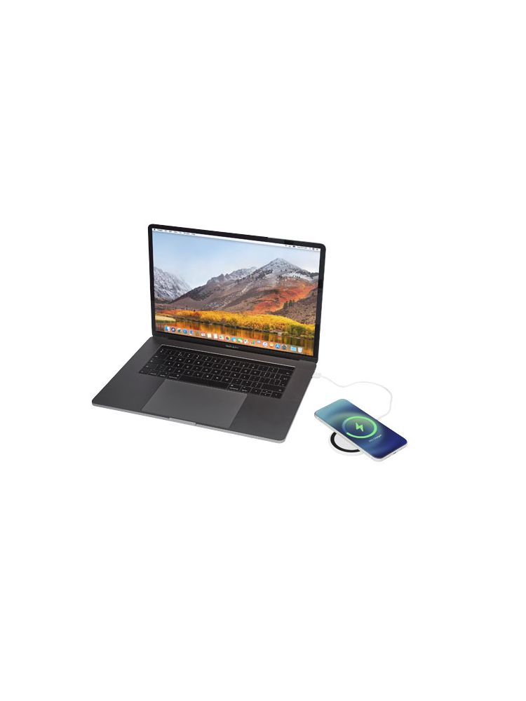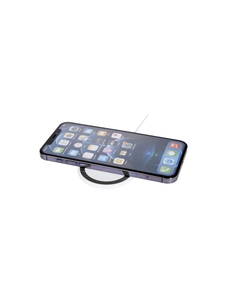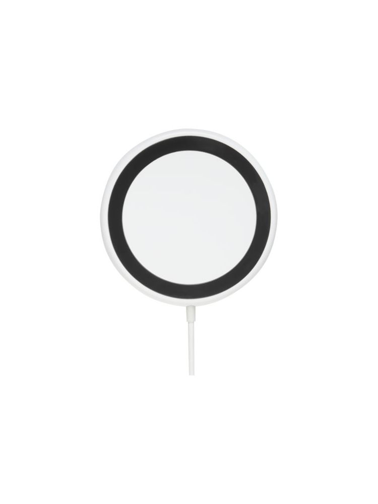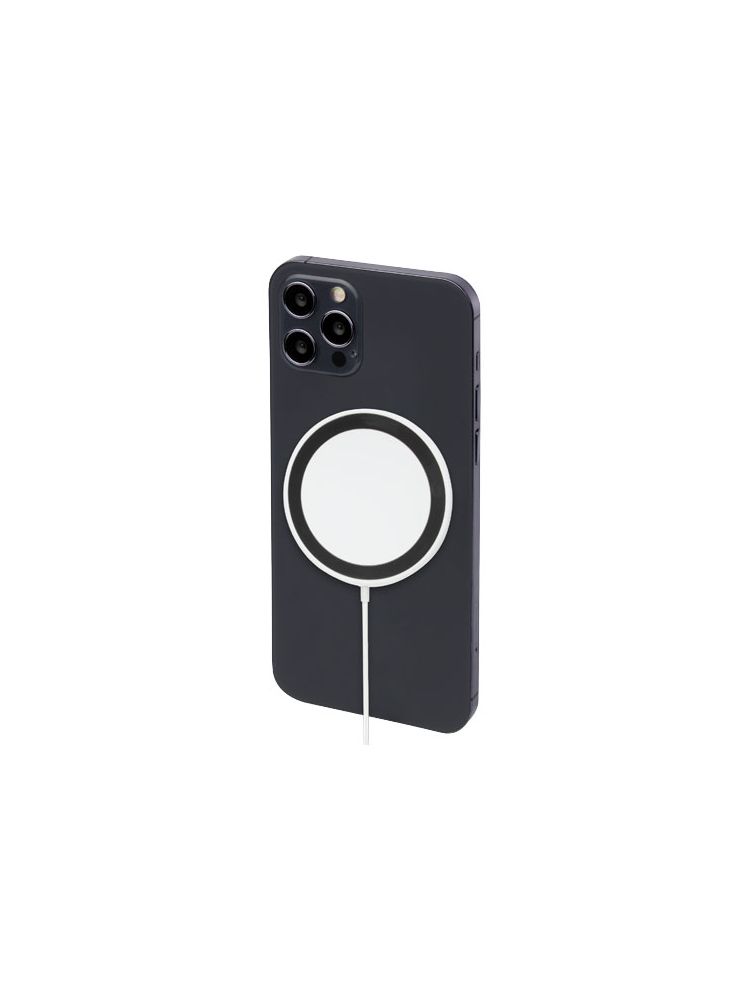 Bezprzewodowa ładowarka indukcyjna, którą można przymocować do tylnej części telefonu (iPhone 12/iPhone 12 Pro /iPhone 12 Pro MAX), aby naładować urządzenie. Ładowarka bezprzewodowa o mocy 10 W jest kompatybilna ze wszystkimi urządzeniami Qi (iPhone 8 lub nowszy oraz urządzenia z systemem Android, które obsługują ładowanie bezprzewodowe), a w przypadku innych telefonów może być używana jako zwykła bezprzewodowa ładowarka indukcyjna. W zestawie znajduje się dodatkowy metalowy pierścień z podwójną taśmą, dzięki któremu produkt ten jest kompatybilny z każdym innym smartfonem, który ma możliwość bezprzewodowego ładowania. Dostarczana w pudełku upominkowym z instrukcją obsługi.