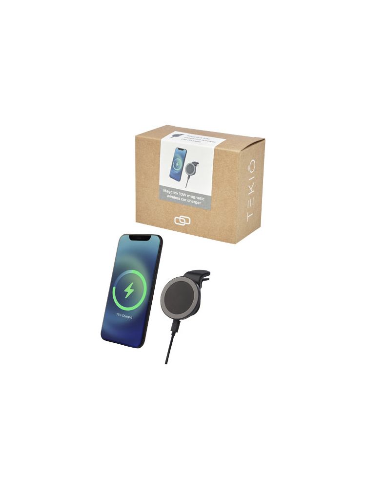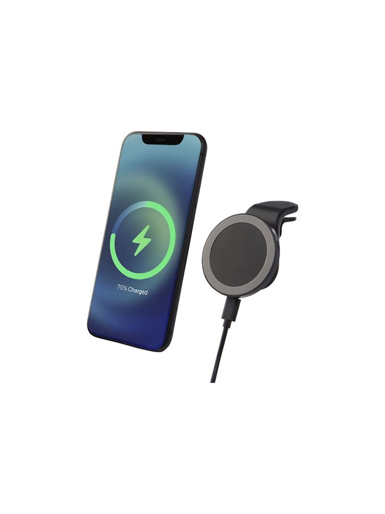 Idealna bezprzewodowa ładowarka samochodowa dla iPhone 12/iPhone 12 pro/iPhone 12 Pro MAX. Dzięki wbudowanym magnesom, urządzenie można po prostu umieścić na ładowarce, a zostanie ono bezpiecznie przymocowane. Ładowarka może być obracana o 360 stopni, aby dostosować ją do każdego kąta widzenia. Moc ładowania bezprzewodowego wynosi maks. 10 W, umożliwiając szybkie ładowanie. W zestawie 100 cm kabel TPE typu C oraz instrukcja obsługi. W zestawie z dodatkowym metalowym pierścieniem z podwójną taśmą, dzięki czemu produkt ten jest kompatybilny z każdym innym smartfonem, który ma możliwość bezprzewodowego ładowania. Dostarczane w wysokiej jakości pudełku z papieru Kraft z kolorową naklejką.