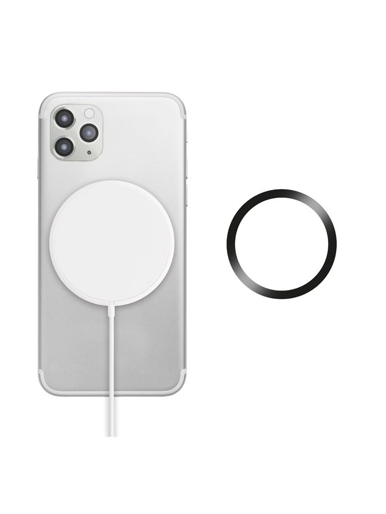 Magnetyczna ładowarka bezprzewodowa z ABS. Wyjście: DC 9V/1.1A (10W) do szybkiego ładowania. W tym dodatkowo magnetyczny metalowy pierścień do ładowania innych niemagnetycznych telefonów z możliwością bezprzewodowego ładowania.