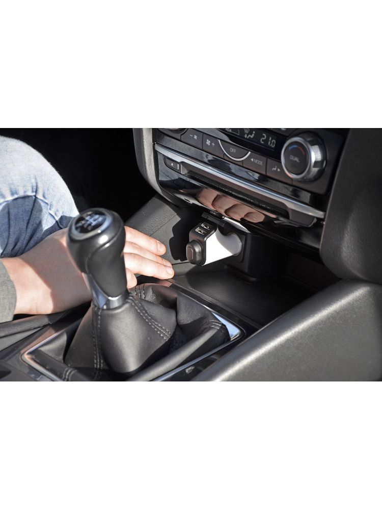 CALLY to urządzenie 2 w 1, które łączy ze sobą możliwość rozmów za pomocą bezprzewodowej słuchawki oraz funkcjonalność tradycyjnej ładowarki samochodowej. Słuchawka bluetooth jest cały czas gotowa do pracy dzięki stacji dokującej. Zestaw jest wyjątkowo wygodny w użyciu, ponieważ podczas połączenia przychodzącego wystarczy wyciągnąć słuchawkę ze stacji dokującej i połączenie zostanie automatycznie odebrane. Ładowarka umożliwia szybkie uzupełnienie energii w dwóch urządzeniach mobilnych jednocześnie przez porty USB. Parametry: moc wejścia 12V, moc wyjścia 5V/2.1A + 2.1A.