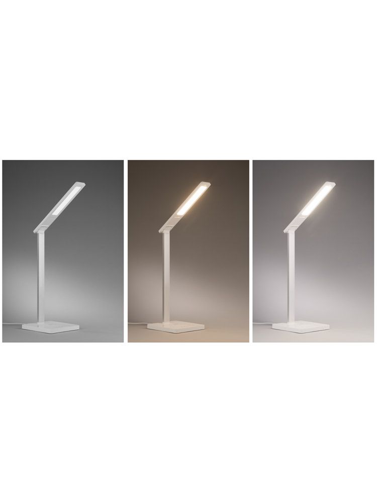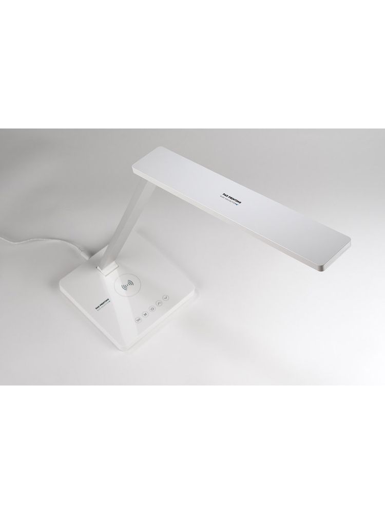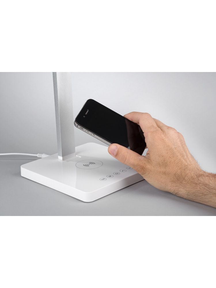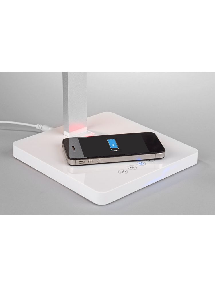 Elegancka lampka na biurko VELIA posiada wbudowaną ładowarkę indukcyjną zgodną ze standardem Qi. Za pomocą dotykowych przycisków można w łatwy sposób dostosować barwę światła (trzy opcje) i jego intensywność oraz nastawić wyłącznik czasowy z godzinnym opóźnieniem. Światło generowane przez VELIĘ jest przyjemne i nieoślepiające, bez efektu stroboskopu. Dane techniczne: – wyjście DC 5V, – zasilanie DC 12V/1.5A, – rodzaj światła LED COB.