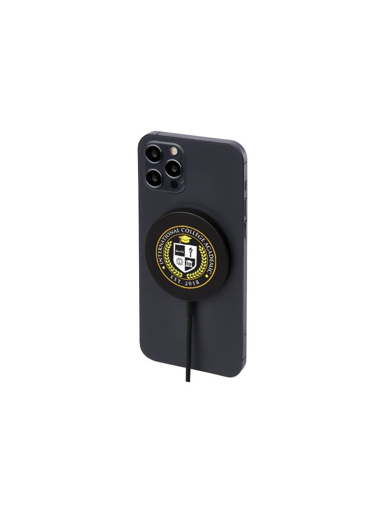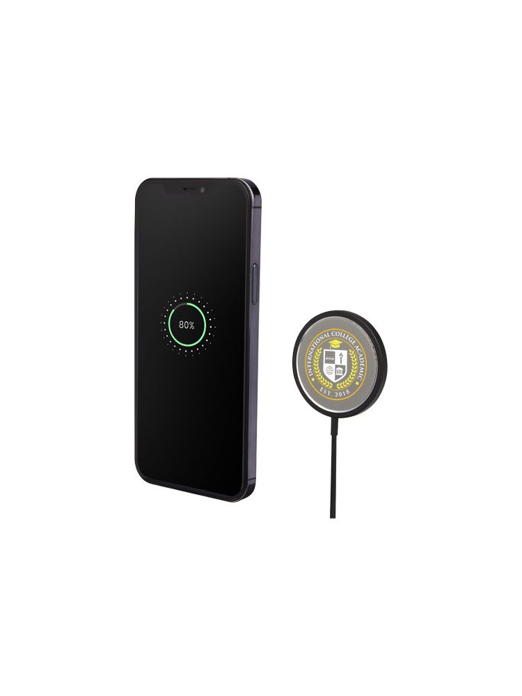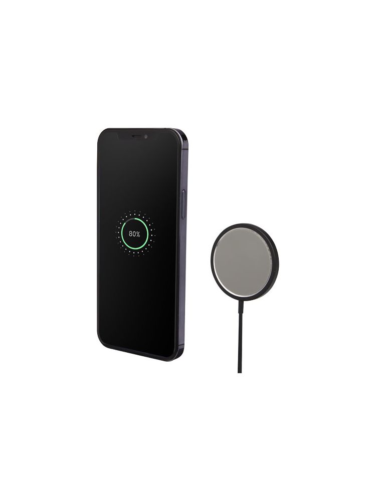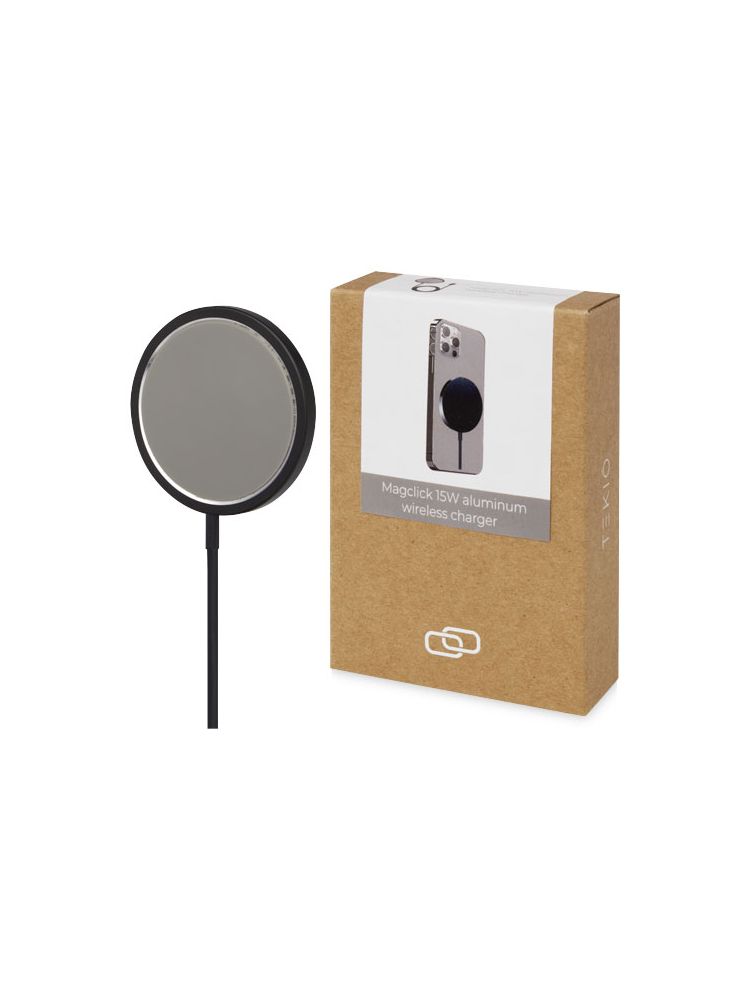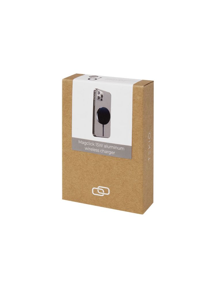 Stylowa bezprzewodowa aluminiowa ładowarka magnetyczna z wyjściem bezprzewodowym do 15 W zapewniająca szybkie ładowanie. Kompatybilna z wszystkimi urządzeniami Qi (iPhone 8 lub nowszy oraz urządzenia z systemem Android, które obsługują ładowanie bezprzewodowe). Dostarczane w wysokiej jakości pudełku z papieru Kraft z kolorową naklejką.