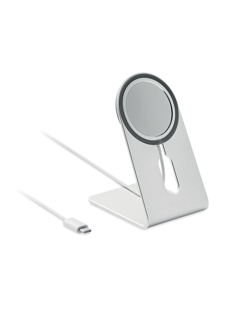 Magnetyczna aluminiowa przenośna bezprzewodowa ładowarka 15W z podstawką pod telefon. Zawiera magnetyczne metalowy pierścień do obsługi ładowania innych niemagnetycznych telefonów bezprzewodowego ładowania. Wyjście: 9V/1.67A (15W) do szybkiego ł
