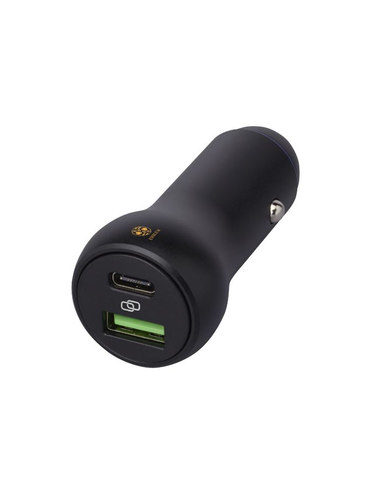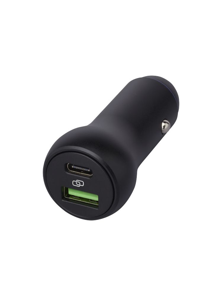 Ładowarka samochodowa wykonana z aluminium z wyjściem USB-C i USB-A, oba obsługujące szybkie ładowanie. Wyjście USB-C o mocy do 55 W, a dla USB-A do 22 W. Kompatybilna z większością telefonów komórkowych. Jeśli jesteś zmęczony tradycyjną prędkością ładowania 5 V / 1 A, to jest to niezbędny gadżet do Twojego samochodu! Dostarczane w wysokiej jakości pudełku z papieru Kraft z kolorową naklejką.