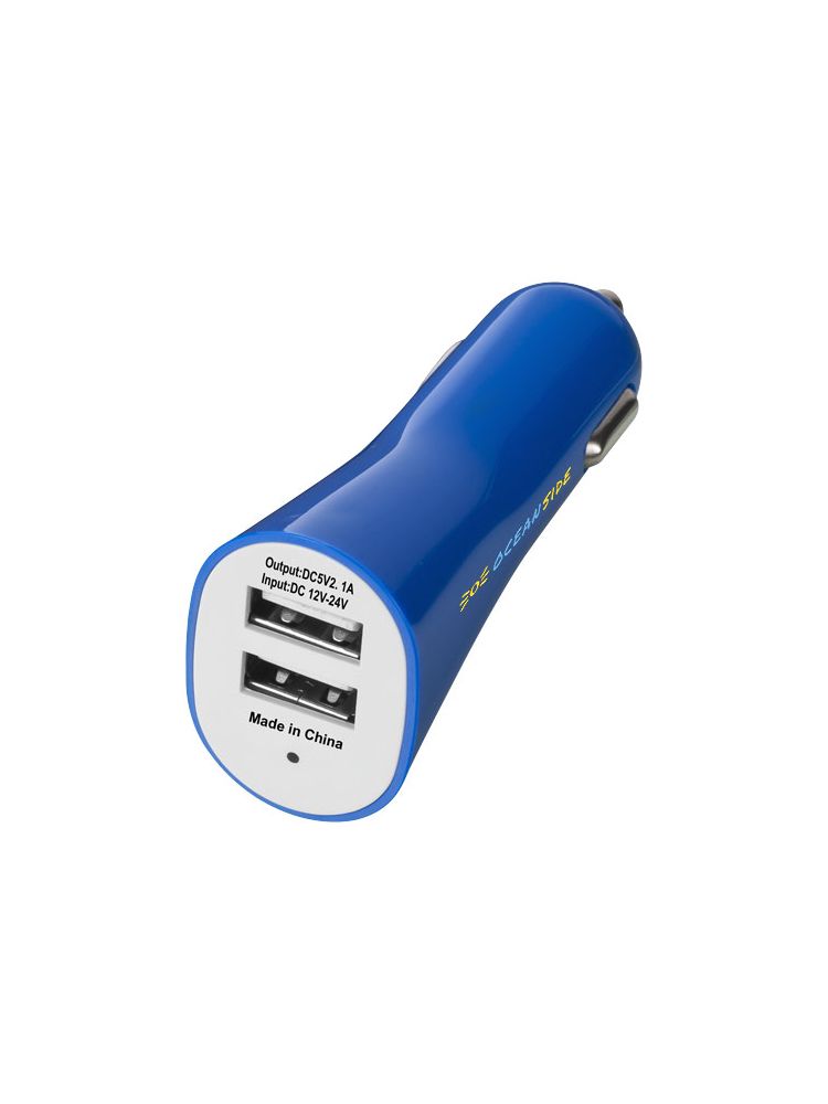 Podwójny adapter samochodowy z wtyczką. Wystarczy podłączyć go do gniazda zapalniczki, aby naładować urządzenia mobilne. Wyjście USB: 5/2,0 A Wejście: 12 V-24 V. Do użytku w samochodach osobowych i ciężarówkach.