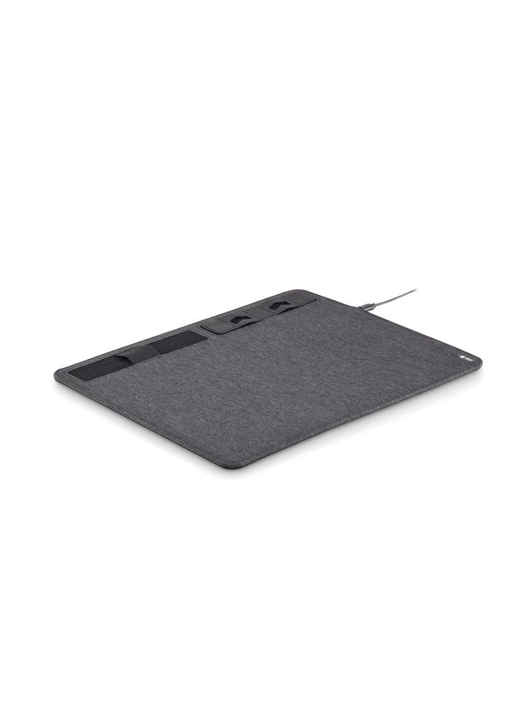 Wielofunkcyjna podkładka pod myszkę 300D Poliester RPET z 15W ładowarką bezprzewodową i funkcją podstawki pod telefon. Wyjście: DC 9V/1.6A (15W) do szybkiego ładowania.