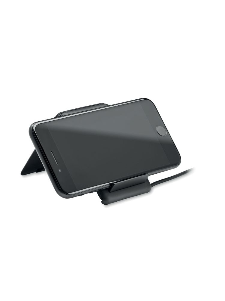 Karta do przechowywania kabli z bezprzewodową ładowarką 15W i funkcją podstawki pod telefon. Typ C do C z konwersją do microB, typ C do AC, przyrząd do wyjmowania SIM, miejsce na 2 Nano i 1 kartę TF.