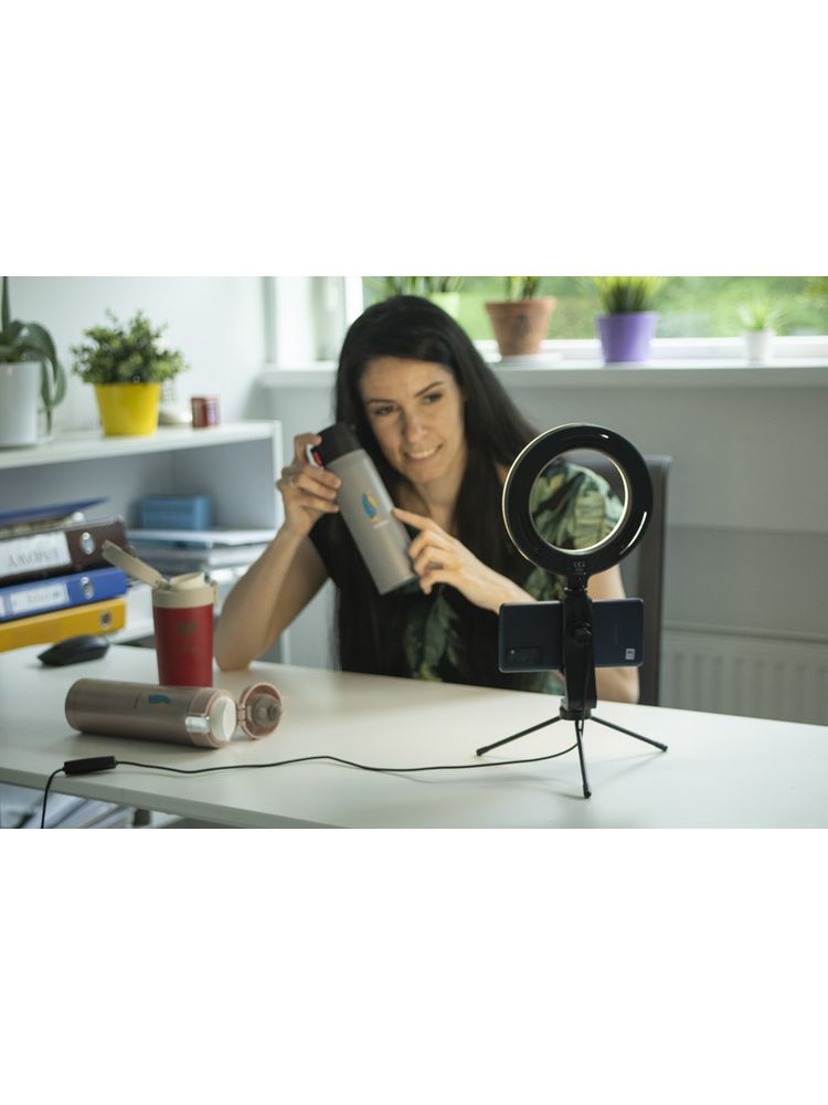 Lampa pierścieniowa FLASH to idealna pomoc do pracy jak i zabawy przy tworzeniu materiałów do mediów społecznościowych, streamingu, w fotografii czy przy kosmetyce. Dzięki swojej modularnej konstrukcji oraz regulowanemu statywowi lampa doskonale sprawdzi się w domu oraz podróży, w pracy wyjazdowej oraz na planach zdjęciowych. Posiada trzy barwy białego koloru: zimną, neutralną, ciepłą i płynną regulację natężenia światła. Wygodny uchwyt na telefon posiada zakres regulacji od 65mm do 115mm. Urzązenie zasilane jest kablem USB.