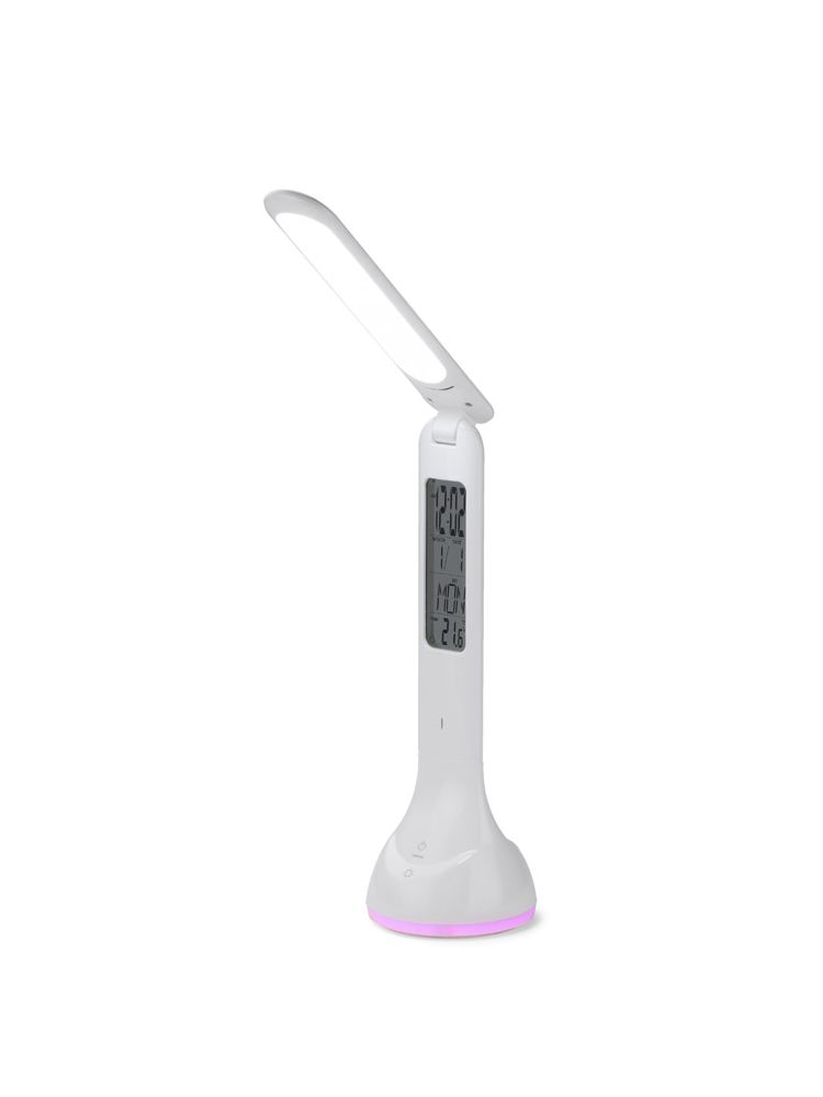 Wyjątkowa lampka na biurko z wbudowaną stacją pogody. Lampka posiada 3 stopnie natężenia światła dzięki czemu biurko zawsze będzie odpowiednio oświetlone. Specjalny filtr przy diadach LED powoduje, że światło jest bardziej naturalne i pomaga w ochronie oczu. Zmienne, wielokolorowe podświetlenie (RGB- red, green, blue) podstawki nadaje jej nowoczesny wygląd i tworzy wyjątkową atmosferę. Lampka ENLI zawdzięcza swoją funkcjonalność wbudowanej baterii o pojemności 1200 mAh, można ustawić ją w dowolnym miejscu bez zbędnego okablowania. Wbudowana stacja pogody posiada następujące funkcje: godzina, data, dzień tygodnia, temperatura, budzik oraz przypomnienie o urodzinach.