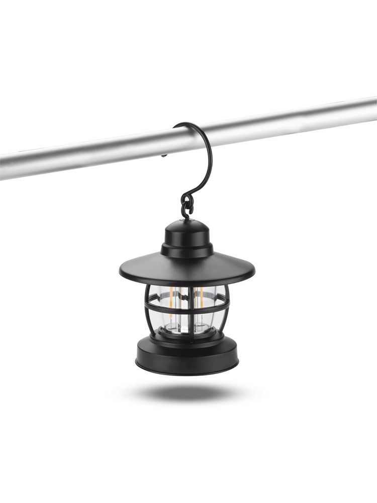 Przenośna lampka CAMPE z diodami typu COB. Duży haczyk pozwala na wygodne powieszenie. Zasilanie bateriami: 3 x AAA.