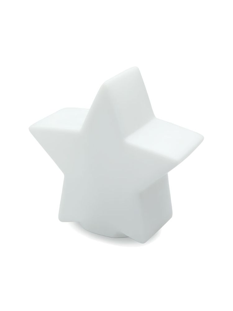 Lampka LED w kształcie gwiazdki wykonana z PVC, zmieniająca kolory: biały, fioletowy, czerwony, żółty i zielony. 3 baterie LR44 dołączone.