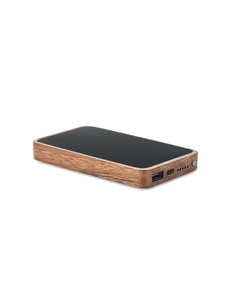 Bezprzewodowa ładowarka 15 W i power bank 4000 mAh z obudową z drewna akacjowego i PU z recyklingu w 58% (40% poliester z recyklingu i 18% PU z recyklingu). Obsługuje technologię szybkiego ładowania (20 W). Wejście/wyjście: Type-C.