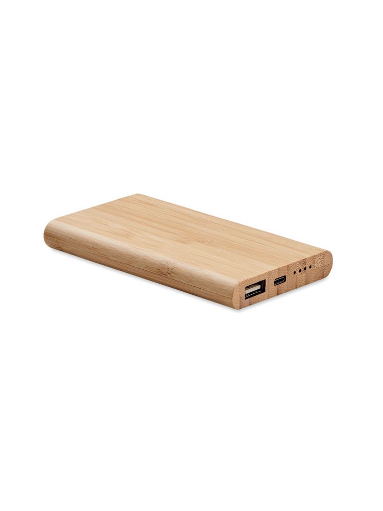 Power bank o pojemności 4000 mAh w obudowie bambusowej. Wyjście DC5V/2A. Zawiera lampkę kontrolną i kabel USB z wtyczką typu C. Bambus jest produktem naturalnym, dlatego mogą wystąpić nieznaczne różnice w kolorze, wzorze i rozmiarze. Wejście/Wyjście: Typ-C.