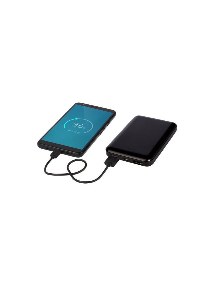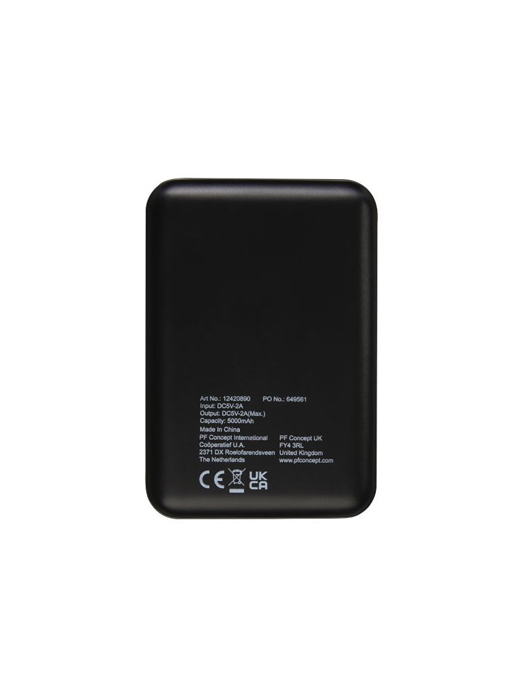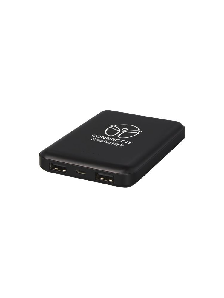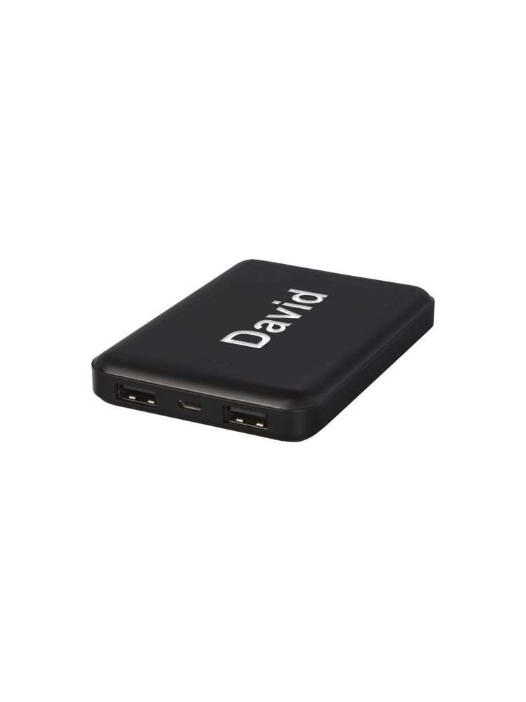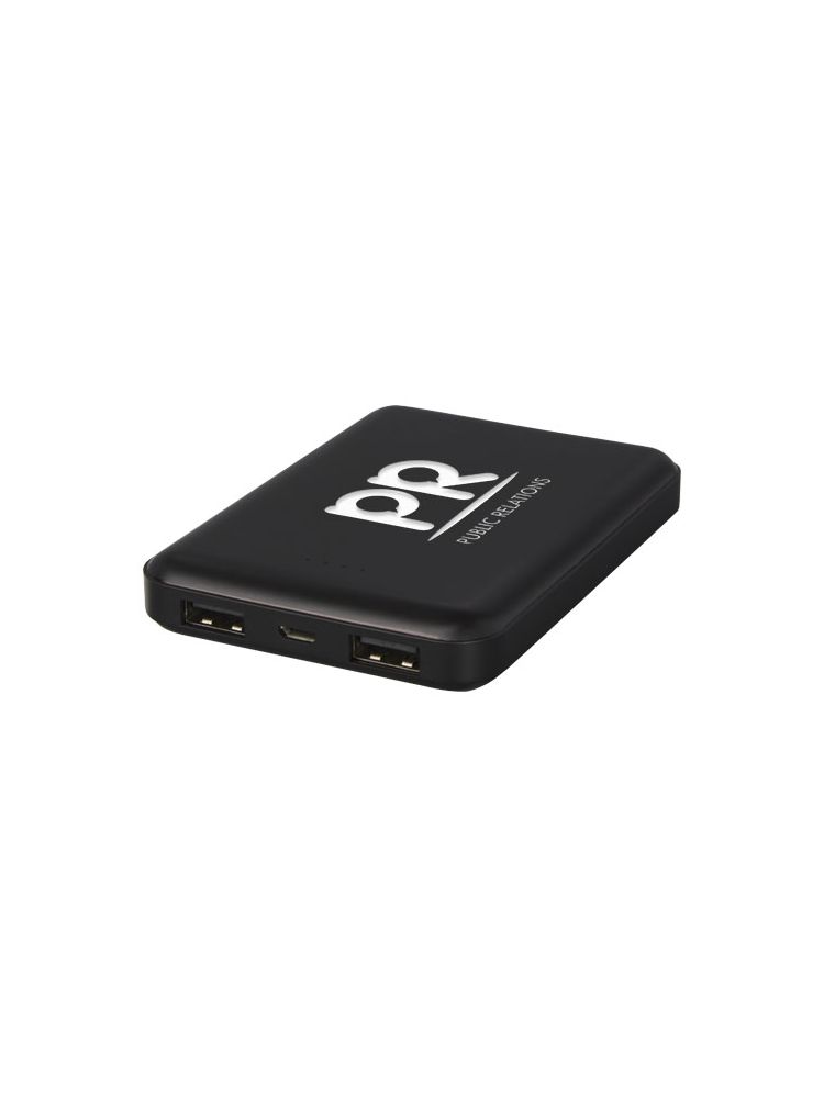 Płaski i wytrzymały powerbank z polimerową baterią o pojemności 5000 mAh. Może zostać wygrawerowany laserowo na przednim panelu, dzięki czemu logo będzie się podświetlać, gdy power bank jest włączony lub używany. Moc: 5V/2A. Wejście: 5V/2A. Brak kabla do akcesoriów ze względów ekologicznych.