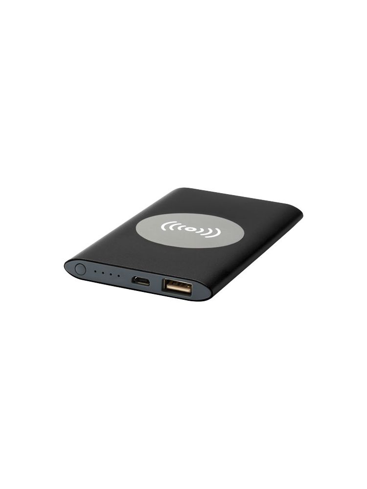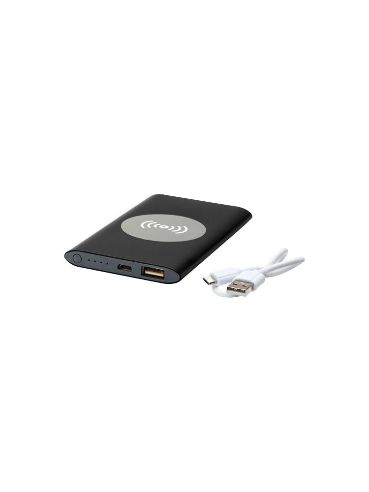 Powerbank o pojemności 4000 mAh z aluminiową obudową. Obsługuje bezprzewodowe ładowanie o mocy 5 W, a także ma wyjście micro USB umożliwiające ładowanie za pomocą kabla. Dzięki litowo-polimerowej baterii o pojemności 4000 mAh może w pełni naładować smartfona. Wskaźnik zasilania, który pokazuje poziom energii przez cały czas. Wbudowany port micro USB: Wyjście 5 V / 2 A: 5V/2A. Bezprzewodowa moc wyjściowa: W zestawie wolny od PVC kabel ładujący z tworzywa TPE. Dostarczane w ozdobnym pudełku upominkowym.