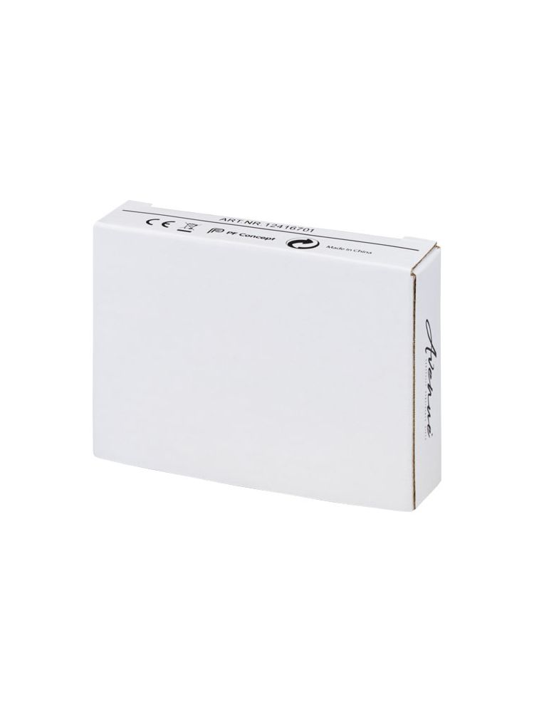 Kieszonkowy powerbank z baterią o wysokiej gęstości energetycznej i pojemności 5000 mAh. Wejście typ C (5 V / 2 A), oraz podwójne wyjście USB-A (5 V / 2 A). W zestawie wolny od PVC kabel ładujący z tworzywa TPE. Dostarczane w pudełku upominkowym Avenue.