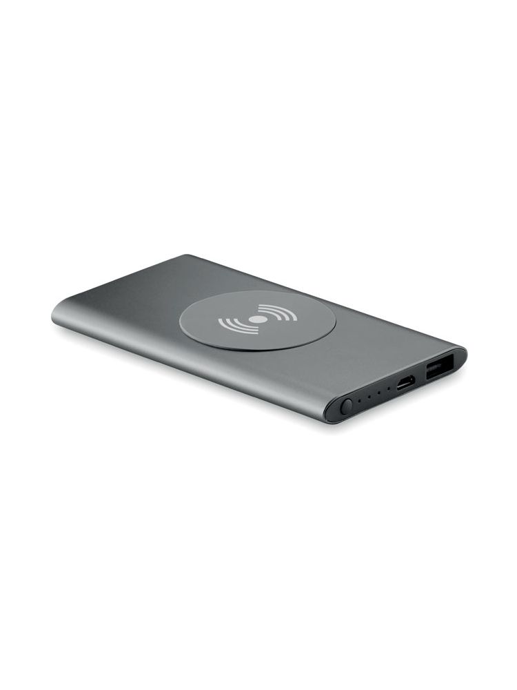 Bezprzewodowy, aluminiowy power bank o pojemności 4000 mAh. Zawiera złącze typu C. Wyjście: DC5V/0.8A. Kompatybilny z najnowszymi androidami, iPhone® 8, 8S i X i nowszymi.