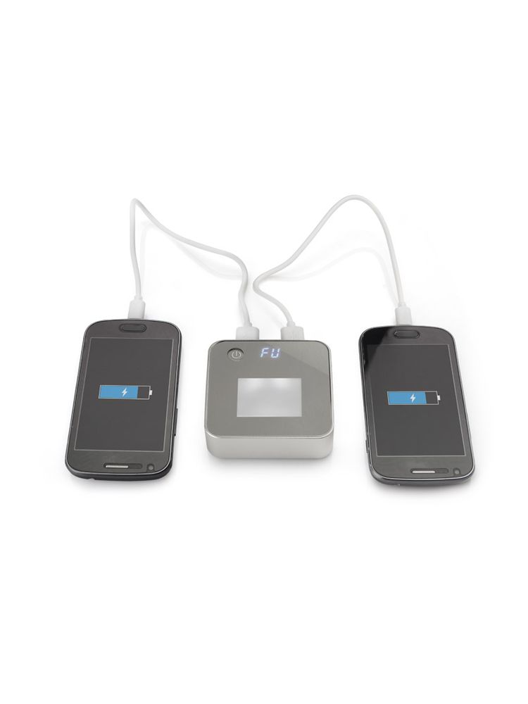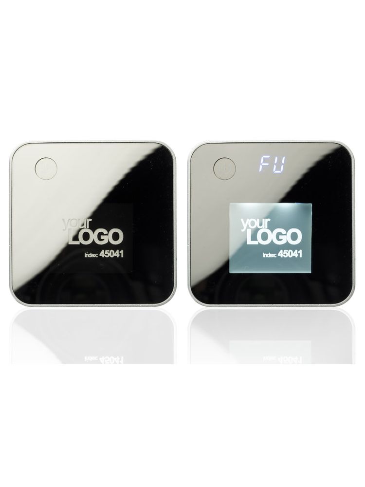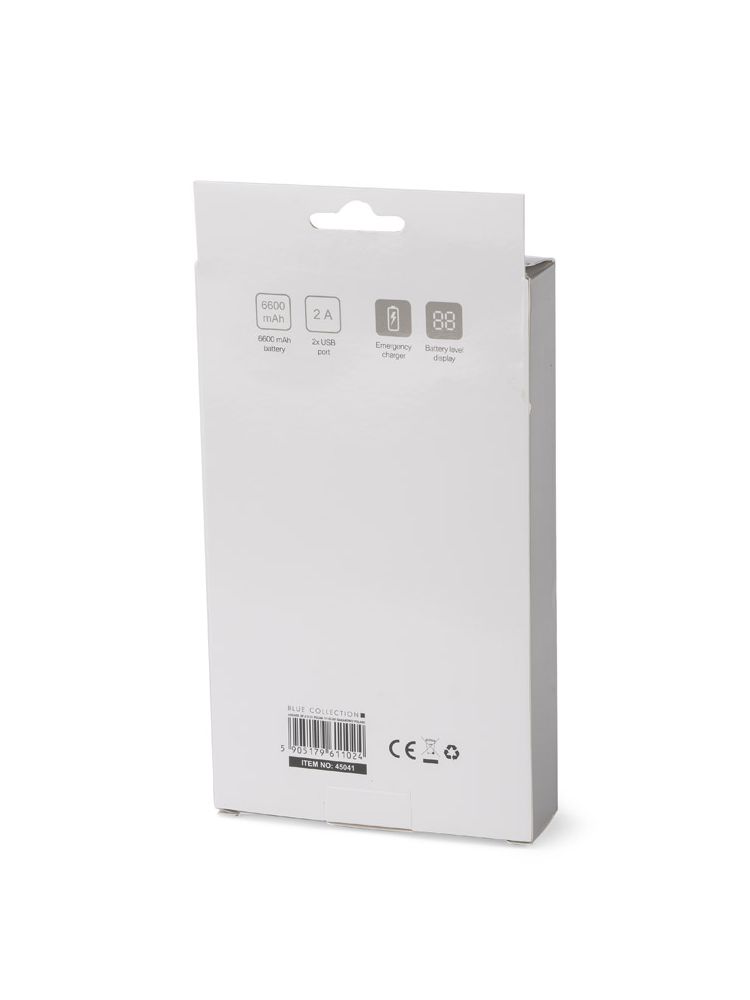 Power bank LUMINI to zewnętrzny akumulator do ładowania urządzeń mobilnych o dużej pojemności 6600 mAh. Ramka obudowy wykonana jest z metalu, a front z podświetlanego od spodu tworzywa. Daje to możliwość wygrawerowania logo, które po naciśnięciu przycisku zostanie podświetlone. Wyświetlacz pokazuje dokładną ilość energii (00-99), jaka pozostała w power banku. 2 wyjścia USB pozwalają na ładowanie dwóch urządzeń jednocześnie.Specyfikacja techniczna:Wejście: 5 V / 1 AWyjście: 5 V / 1 A i 2 A.Do zestawu dołączony jest kabel USB z końcówką micro USB.