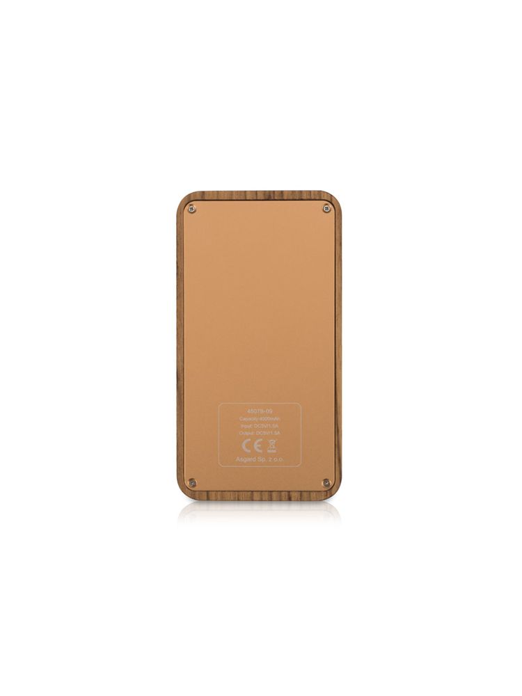 Power bank dla entuzjastów produktów ekologicznych. Obudowa została zastąpiona naturalnym tworzywem, jakim jest drewno. Posiada port USB oraz wskaźnik poziomu energii. W zestawie standardowy kabel micro USB do ładowania oraz instrukcja obsługi. Produkt jest zgodny z odpowiednimi dyrektywami Unii Europejskiej, posiada znak CE oraz 1 rok gwarancji. Dane techniczne: – wejście: 5 V / 1,5 A (port micro USB)- wyjście: 5 V / 1,5 A – pojemność baterii: 4 000 mAh.