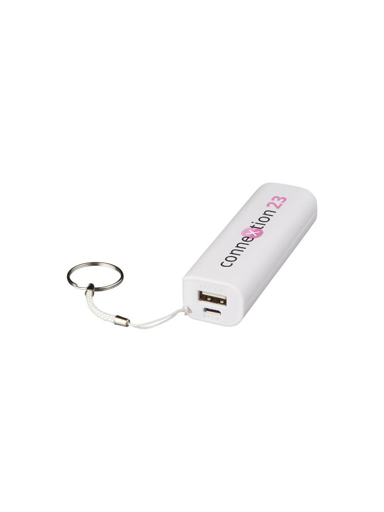 Powerbank z litowo-jonowym akumulatorem 1200 mAh, naładuje smartfon, odtwarzacz MP3 i wiele innych urządzeń. Posiada też kółko, dzięki czemu może służyć jako brelok. W zestawie z kablem micro USB. Napięcie wejściowe 5 V/1 A, wyjściowe 5 V/1 A. Pakowany w białe pudełko upominkowe.