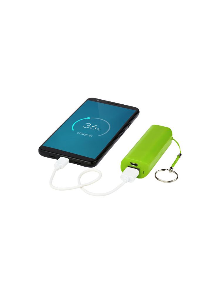 Powerbank z litowo-jonowym akumulatorem 1200 mAh, naładuje smartfon, odtwarzacz MP3 i wiele innych urządzeń. Posiada też kółko, dzięki czemu może służyć jako brelok. W zestawie z kablem micro USB. Napięcie wejściowe 5 V/1 A, wyjściowe 5 V/1 A. Pakowany w białe pudełko upominkowe.