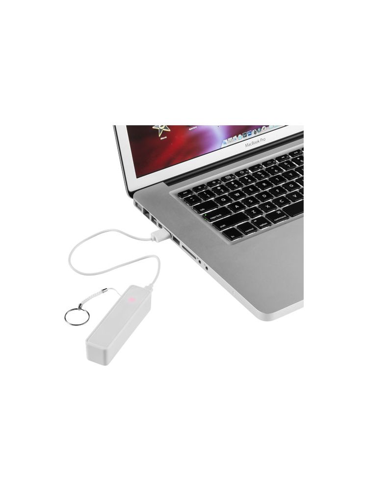 Akumulator o pojemności 2000 mAh z diodą LED sygnalizującą ładowanie powerbanku. Proces ten trwa około 2 godzin i odbywa się za pomocą kabla USB. Do zestawu dołączono także metalowy pierścień na klucze. Całość zapakowana w biały karton.