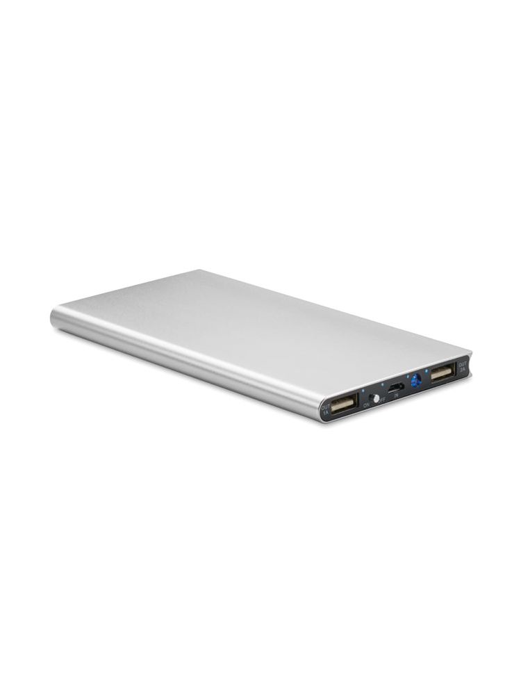 Power bank 8000 mAh wykonany z aluminium. Nadaje się do ładowania smartfonów, dane prądu wyjściowego DC5V/1A i DC5V/2A. Zawiera wskaźnik LED i kabel USB z wtyczką micro USB.