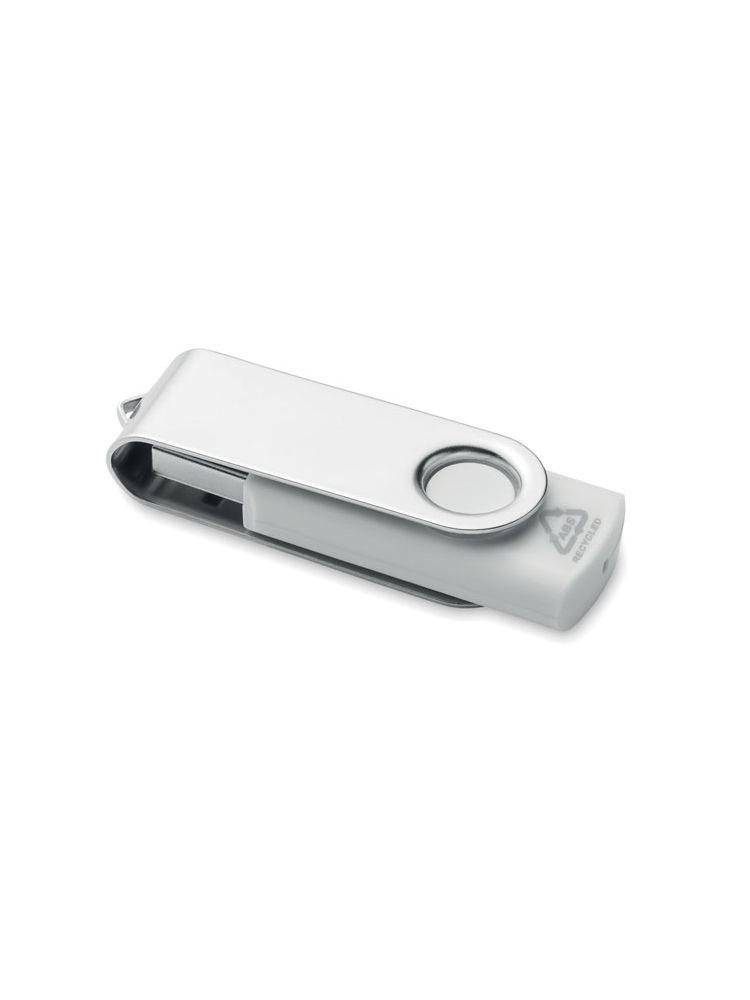 Pamięć USB 2.0 o pojemności 16 GB z ABS z recyklingu z ochronną osłoną i z białym wykończeniem. Obróć metalową osłonę i podłącz do portu USB.