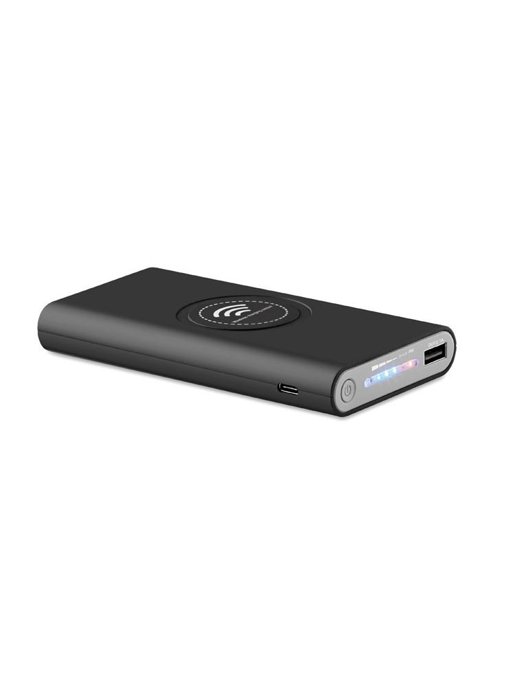 Powerbank 8000mAh do bezprzewodowego ładowania urządzeń. Powerbank może być ładowany za pomocą kabla lub bezprzewodowo. W zestawie złączka typ C. DC5V/2.1A. Bezprzewodowe wyjście DC5V/1A. Bezprzewodowy odbiornik: DC5V/0.75A .