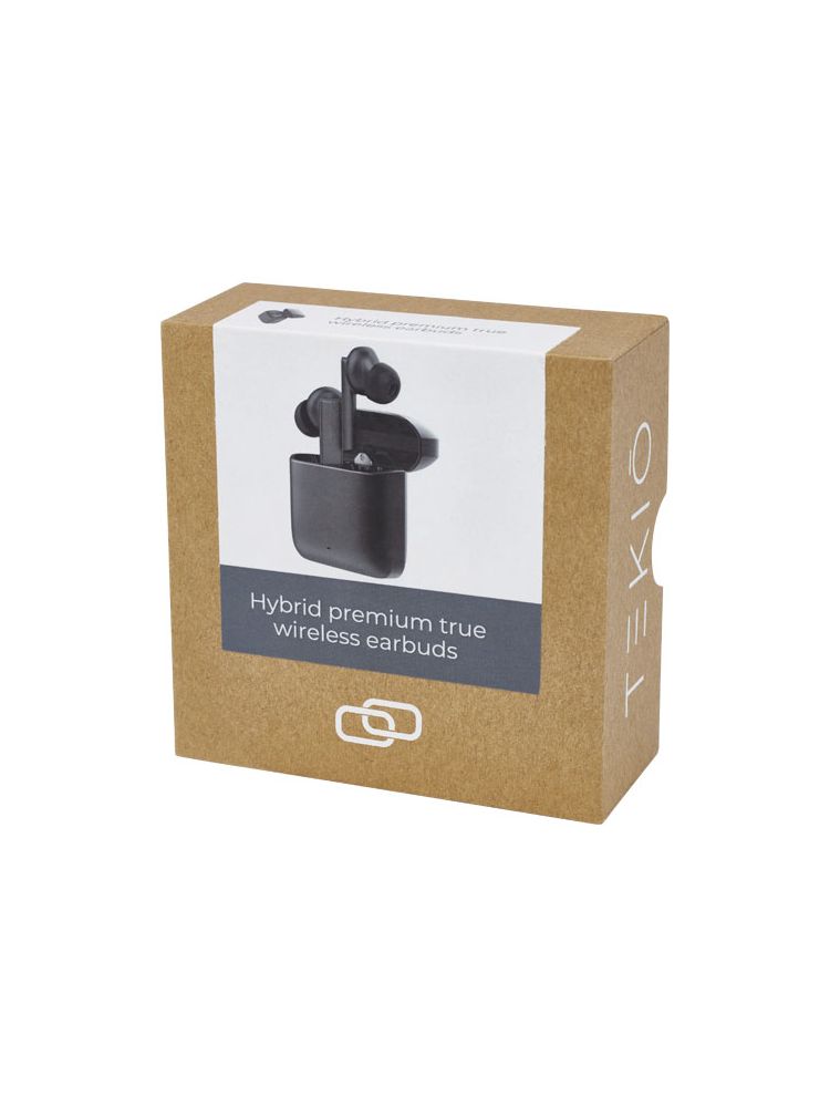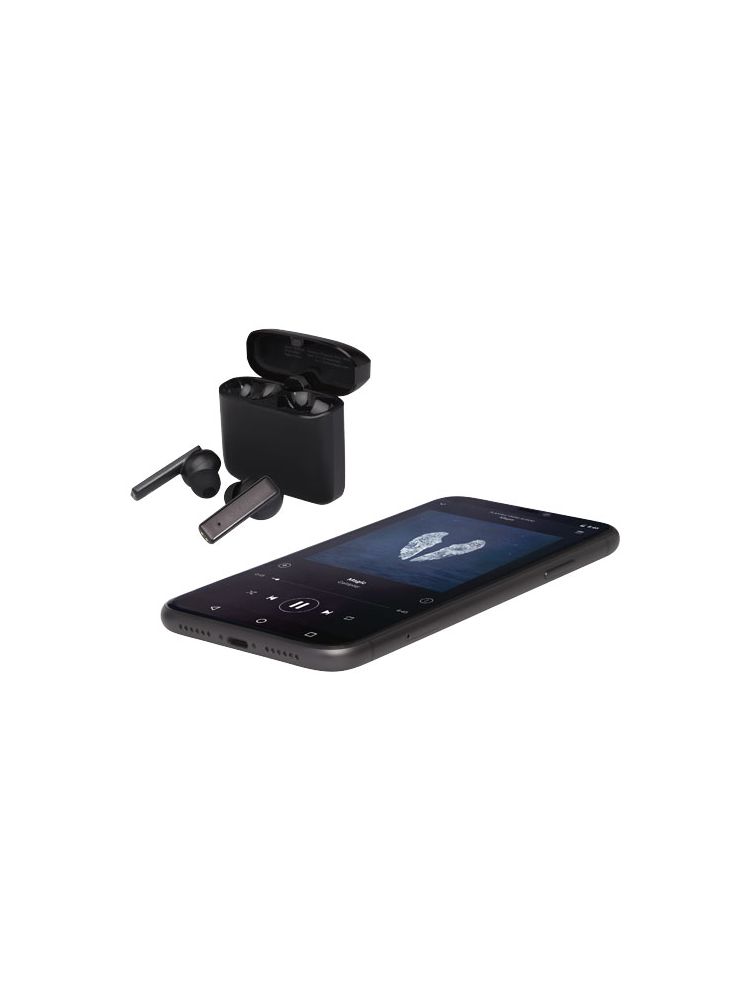 Trwałe, wysokiej jakości słuchawki douszne TWS o niesamowitej jakości dźwięku. Słuchawki douszne mają elegancki wygląd i są wygodne do noszenia przez dłuższy czas. Certyfikat IPX4 i odporność na pot to świetna cecha dla miłośników sportu. Bluetooth® 5.1 z zasięgiem połączenia do 10 metrów. Słuchawki douszne zapewniają do 3,5 godziny odtwarzania przy maksymalnej głośności na jednym ładowaniu. Etui do ładowania o pojemności 300 mAh może naładować słuchawki do 4 razy od 0% do 100%, a samo etui do ładowania można w pełni naładować w ciągu 2 godzin. Wbudowane elementy sterujące muzyką i mikrofon dla poręcznej obsługi. Dostarczana w pudełku Tekiō z wysokiej jakości papieru Kraft z kolorową naklejką.