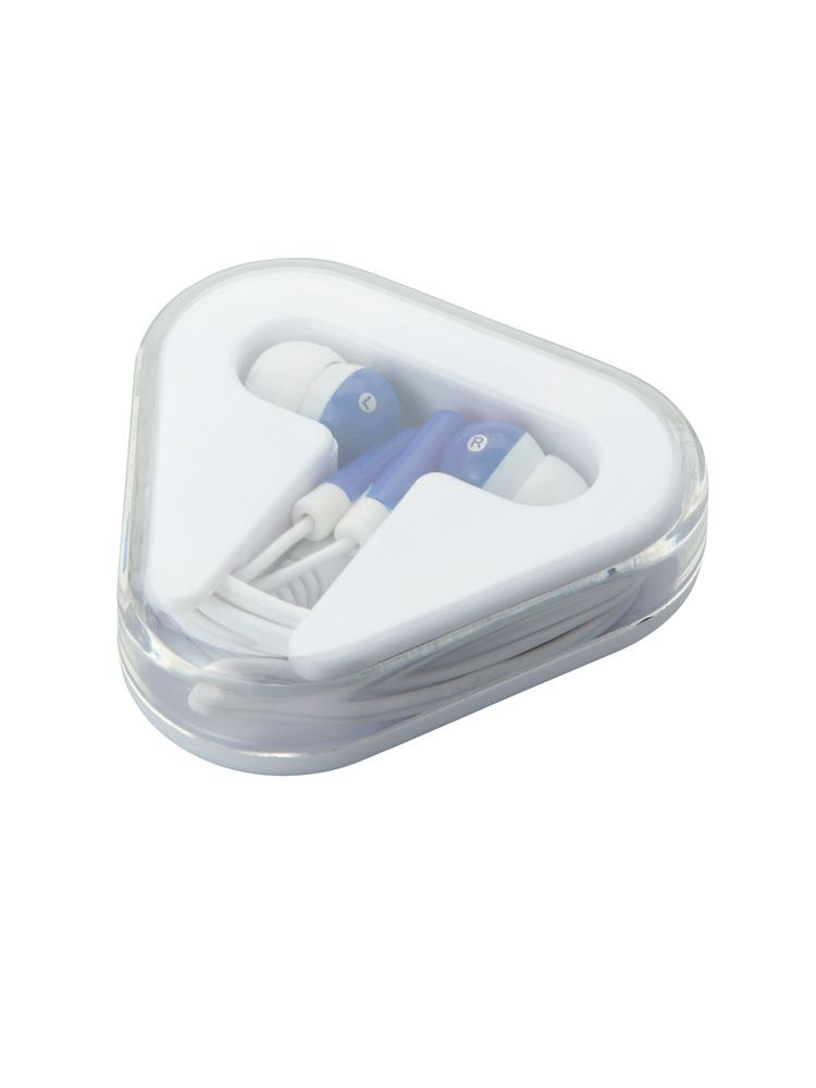 Słuchawki z PVC w trójkątnym etui. Kabel długości 120cm.