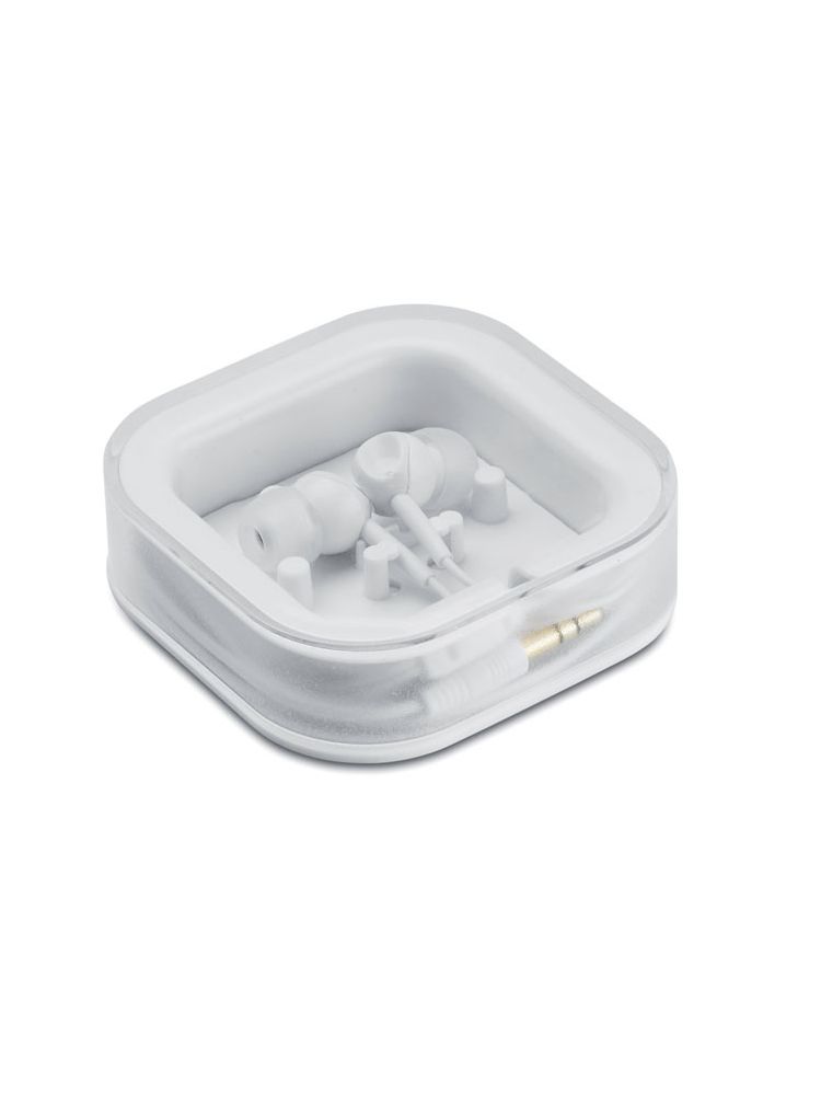 Pokryte silikonem słuchawki z kablem 120cm. Specjalne wyciszenie hałasów z zewnątrz. Plastikowe pudełko, w którym można również przechowywać kabel. Dołączone 2 zapasowe silikonowe nakładki w różnych rozmiarach.