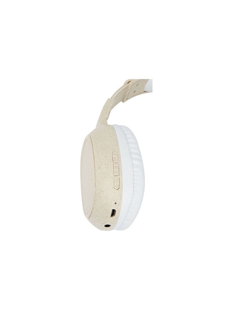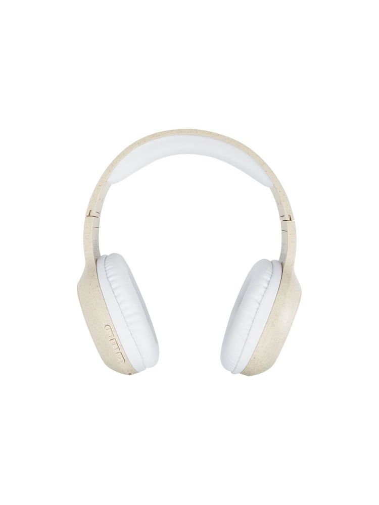 Wygodne, lekkie i wytrzymałe słuchawki bezprzewodowe z technologią Bluetooth® 5.0 zapewniającą stabilne połączenie oraz wbudowany mikrofon do odbierania rozmów telefonicznych. Słuchawki są składane, a konstrukcja nauszna zapewnia doskonałe wrażenia dźwiękowe. Wbudowany akumulator litowy o pojemności 200 mAh zapewnia czas odtwarzania do 4 godzin i można go w pełni naładować w ciągu 2 godzin. Zasięg działania do 10 metrów. Wykonany z mieszanki słomy pszennej i plastiku ABS, co zmniejsza zapotrzebowanie na nowy plastik. Dostarczane w pudełku upominkowym wraz z instrukcją obsługi (oba te przedmioty wykonane są z materiałów ekologicznych).