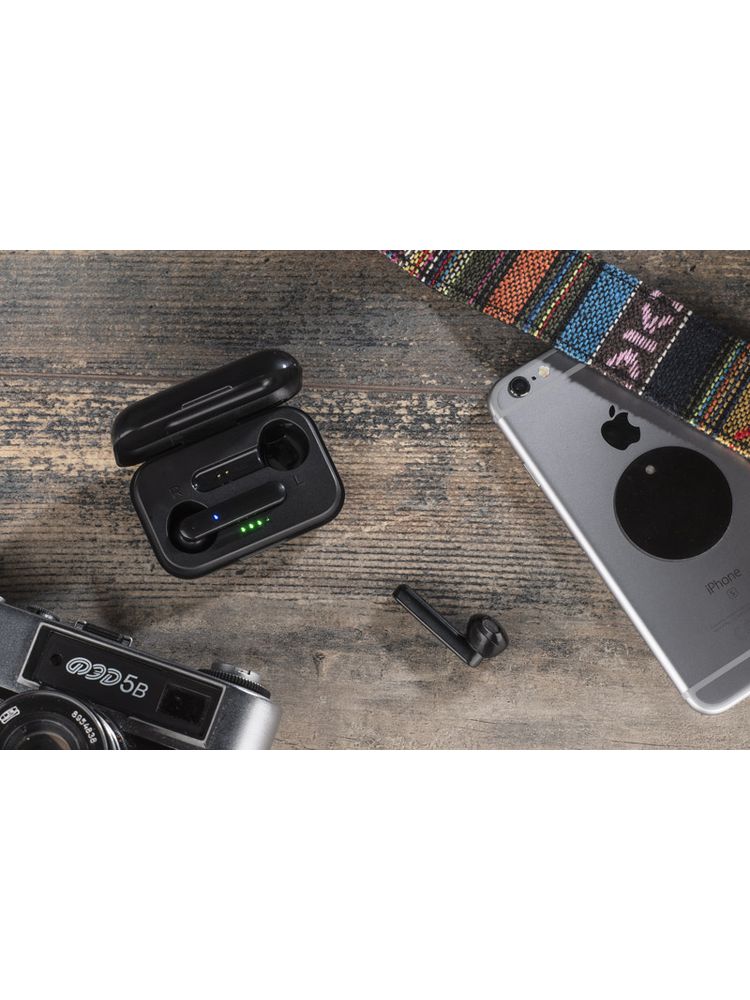 Słuchawki bezprzewodowe LUNGO wyróżniają się swoim kieszonkowym rozmiarem. Charakteryzują się bardzo dobrą jakością dźwięku, są lekkie i wygodne. Wyposażone są w stację dokującą o pojemności 300 mAh, która służy do wygodnego przechowywania oraz ładowania słuchawek. Posiadają dotykowy przycisk sterujący, którym można zatrzymywać i przewijać utwory oraz odbierać/kończyć połączenia. Każda ze słuchawek wyposażona jest w baterię o pojemności 50 mAh. Słuchawki posiadają wbudowany mikrofon, co pozwala na prowadzenie rozmów. Możliwość używania tylko jednej słuchawki. Dane techniczne: wersja Bluetooth: V5.0, częstotliwość Bluetooth: 2,4 GHz, zasięg Bluetooth: do 10m, czas pracy do 3,5 godz., czas czuwania: 500 godz.