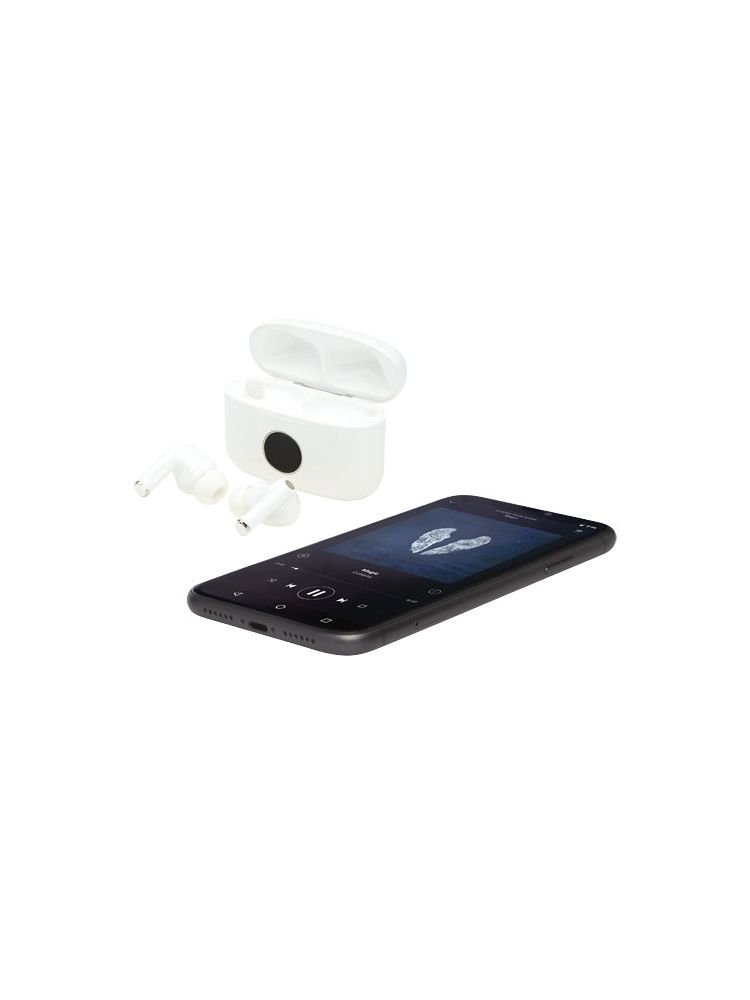 Słuchawki douszne True Wireless Stereo (TWS) z funkcją aktywnej redukcji szumów (ANC), redukującą hałas o 20 dB, zapewniając fantastyczne doznania muzyczne nawet w pociągu, samolocie, autobusie lub innych miejscach, w których występuje dużo niepożądanego szumu. Wbudowany wielofunkcyjny przycisk do aktywacji asystenta głosowego, poręczne sterowanie odtwarzaniem/pauzą/odbieraniem/rozłączaniem/odrzucaniem/kolejnym utworem/poprzednim utworem/głośnością w górę/głośnością w dół. W „trybie przezroczystym” słuchawki wzmacniają dźwięk z zewnątrz dzięki wbudowanemu programowi, co pozwala na zachowanie kontaktu z otoczeniem podczas korzystania ze słuchawek. Czas odtwarzania przy maksymalnej głośności i włączonym trybie ANC wynosi około 3 godziny. Słuchawki douszne mogą zostać w naładowane do pełna 4 razy na jednym ładowaniu. Połączenie Bluetooth® 5.0 o maksymalnym zasięgu do 10 metrów. W zestawie z 3 regulowanymi wkładkami dousznymi i kablem do ładowania TPE. Sprzedawane w ozdobnym pudełku upominkowym.