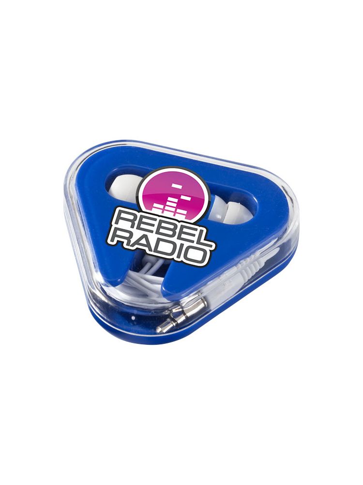 Wkładki douszne Rebel są prostymi wkładkami dousznymi, które ułatwiają słuchanie muzyki w każdym miejscu i czasie. Można ich używać z każdym standardowym urządzeniem audio wyposażonym w gniazdo audio 3,5 mm. Słuchawki są wykonane z mocnego tworzywa ABS i są dostarczane w plastikowym trójkątnym etui z miejscem na kabel, co dobrze chroni je przed wszelkimi uszkodzeniami zewnętrznymi. Wkładki douszne Rebel są dostępne w różnych kombinacjach kolorystycznych i oferują różne opcje nadruku logo.