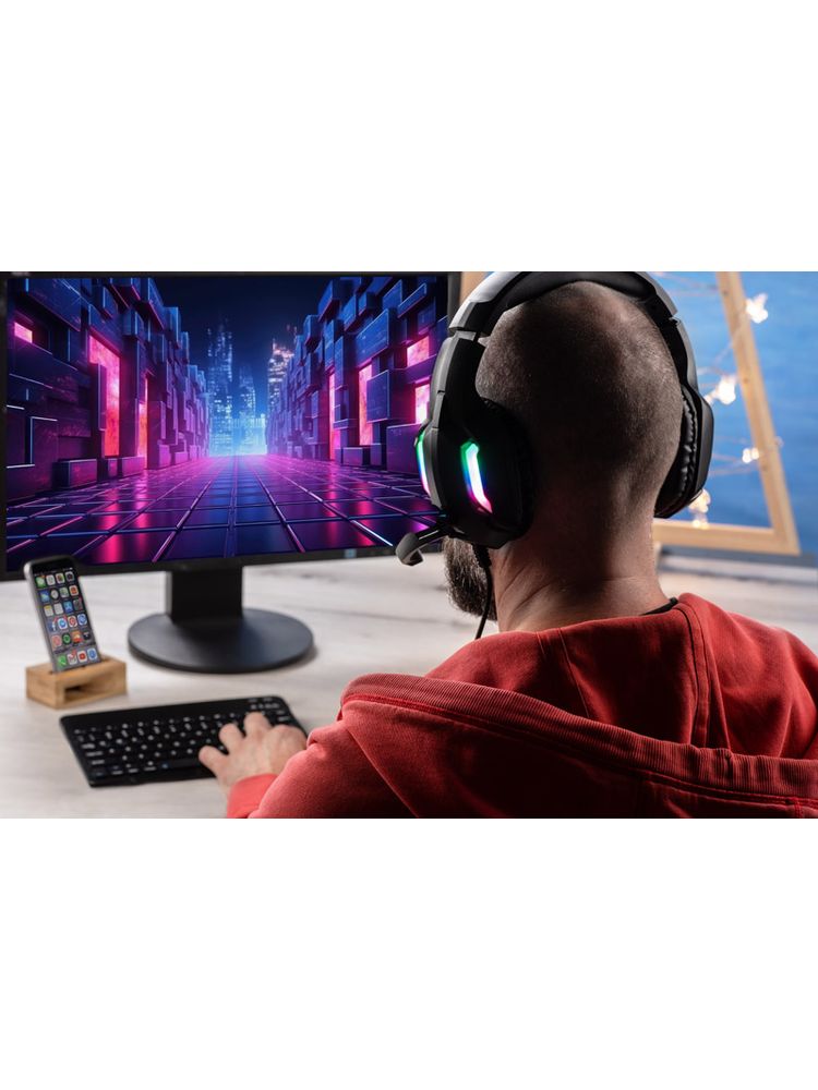 Słuchawki nauszne z mikrofonem o wysokiej jakości dźwięku i ergonomii. Mnogość stopni regulacji wysokości pozwala dopasować je idealnie dla każdego. Wysoka jakość dźwięku zapewnia świetne wrażenia zarówno podczas słuchania muzyki, grania w gry jak i oglądania filmów. Dzięki dołączonemu mikrofonowi możemy je również użytkować jako narzędzie pracy. Wysoki poziom wygłuszenia zapewni komfort użytkowania i pozwoli maksymalnie skupić się na wykonywanej czynności. Produkt jest zgodny z odpowiednimi dyrektywami Unii Europejskiej oraz posiada znak CE. Średnica głośnika: 40mm
