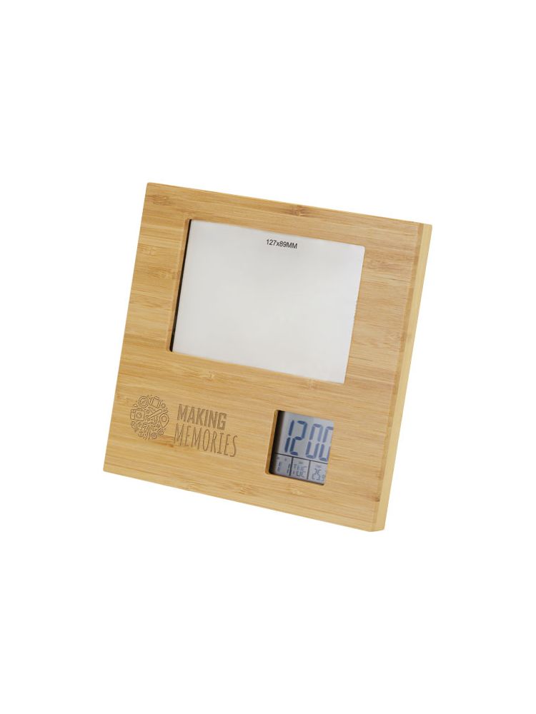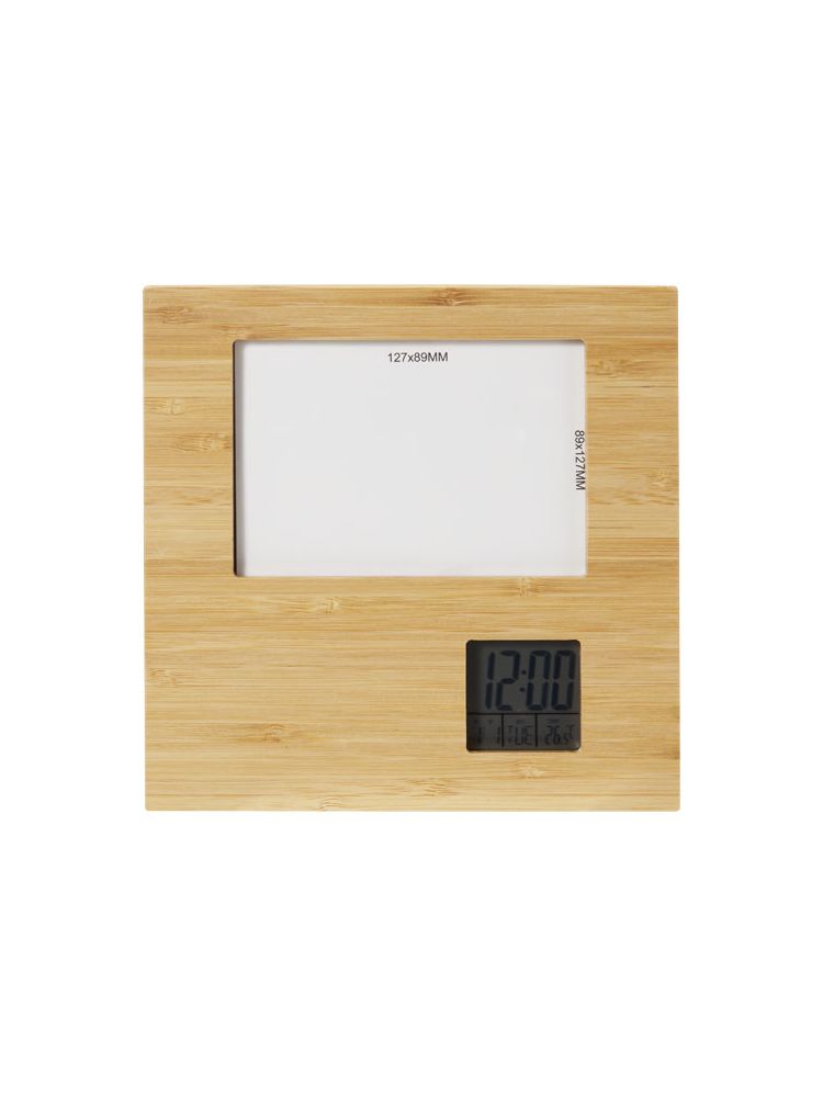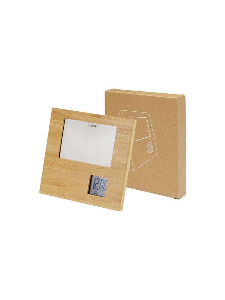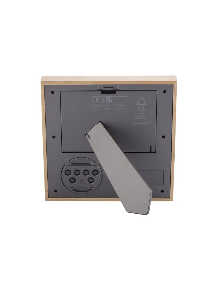 Bambusowa ramka na zdjęcia Sasaze stacją pogodową to stylowy i funkcjonalny dodatek do Twojego domu lub biura. Dzięki głównej obudowie z odpowiedzialnie pozyskiwanego bambusa i tylnej obudowie z tworzyw sztucznych pochodzących z recyklingu, ta ramka na zdjęcia emanuje naturalną elegancją, jednocześnie promując zrównoważony rozwój. Silikonowe przyciski zapewniają wygodę i responsywność, a szkło LCD zapewnia wyraźny wyświetlacz o wysokiej rozdzielczości. Ta ramka na zdjęcia oferuje również szereg przydatnych funkcji. W trybie normalnym wyświetla godzinę, miesiąc, datę, dzień tygodnia i temperaturę. Posiada również funkcję alarmu/drzemki, która pomaga rozpocząć dzień na czas. Tryb przypomnienia o urodzinach pozwala śledzić ważne daty, a tryb czasomierza jest idealny do odmierzania czasu zadań lub czynności. Dodatkowo tryb doceniania muzyki oferuje wybór do 7 opcjonalnych utworów dla Twojej przyjemności. Zawiera 2 baterie AA. Dostarczana z pudełkiem upominkowym z papieru Kraft i instrukcją obsługi.