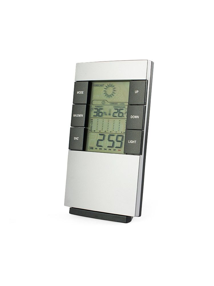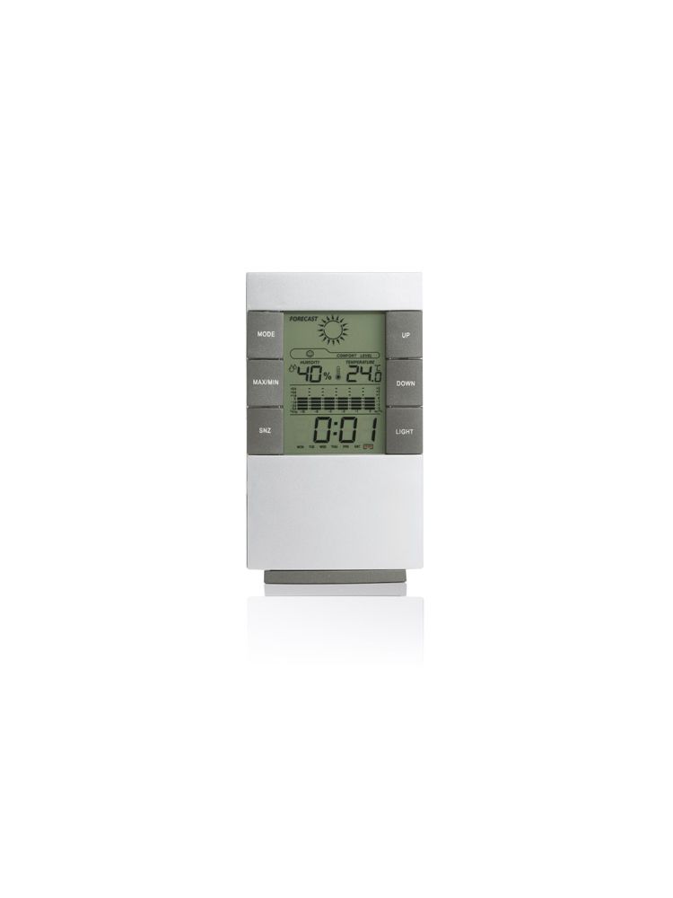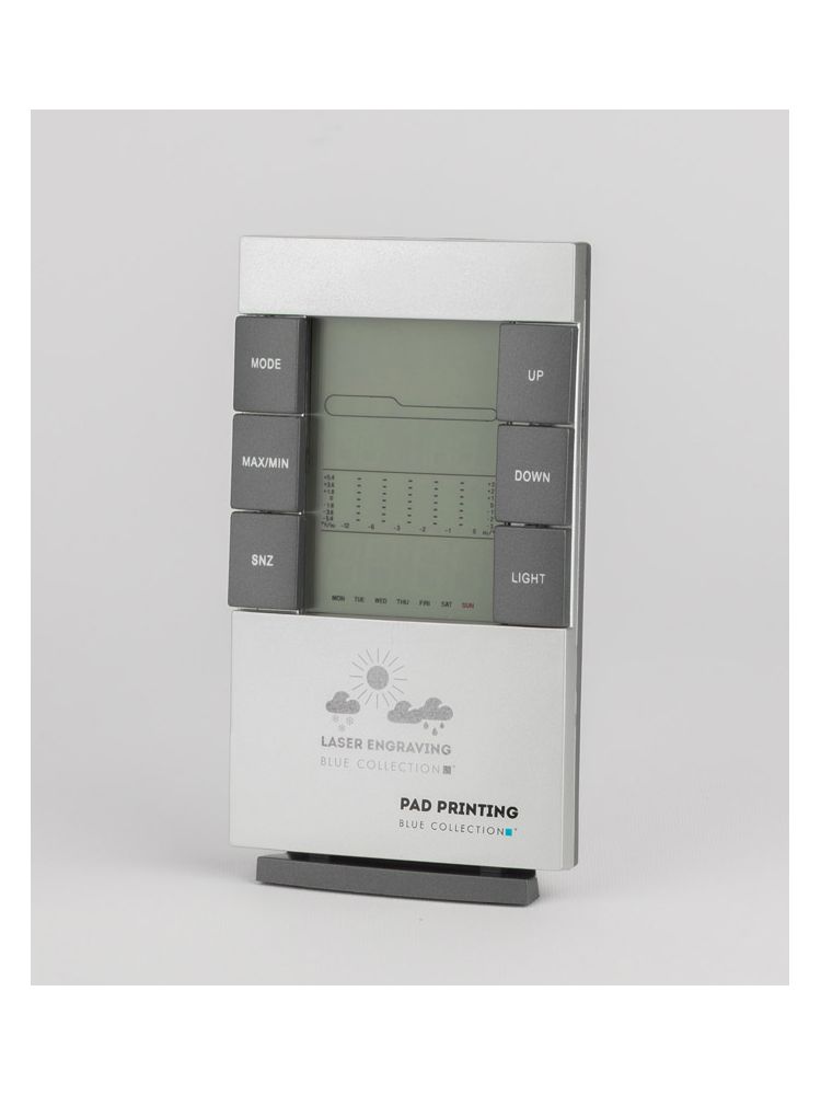 Używając tej nowoczesnej stacji prognozowanie pogody nie będzie już stanowiło problemu. Stacja posiada następujące funkcje:termometr (max/min), higrometr (max/min), zegar z budzikiem, kalendarz, biometr, przewidywanie pogody, podświetlenie ekranu. Logo nadrukujemy lub wygrawerujemy z przodu produktu.