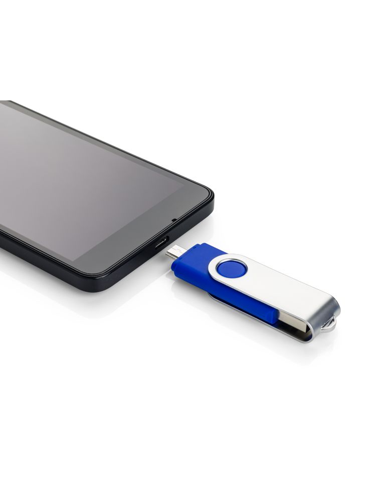 U-Disc o pojemności 16 GB z dodatkową wtyczką micro USB. Po podłączeniu pamięci do kompatybilnego urządzenia (telefonu lub tabletu z funkcją OTG oraz gniazdem micro USB) możliwy jest transfer dowolnych plików z telefonu na U-Disc i vice versa. Obie wtyczki (USB i micro USB) pracują w standardzie Plug and Play, w technologii USB 2.0. Logo wygrawerujemy na metalowej powierzchni. Standard USB: 2.0. Szybkość zapisu: 7,5 MB/s; szybkość odczytu: 22 MB/s. Pamięć USB objęta jest 5 letnią gwarancją producenta.Sugerowane opakowanie: 44502, 44508.