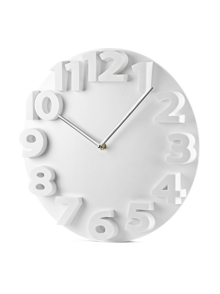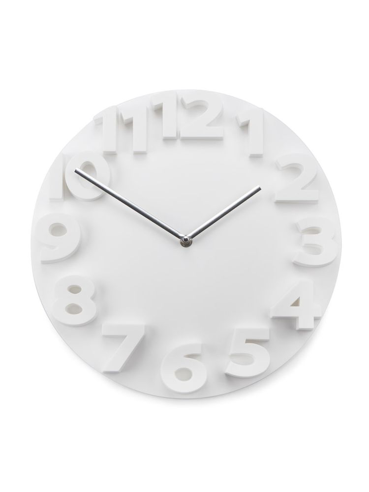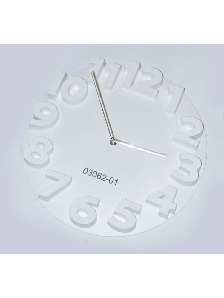 Duży zegar o nowoczesnym wyglądzie. Dzięki wypukłym cyfrom godzina jest bardzo dobrze widoczna.