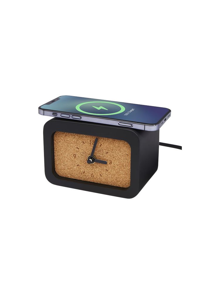 Oto Momento zegarek biurkowy z funkcją ładowania indukcyjnego, jest wykonany z naturalnego wapienia i korka. Jest idealnym akcesorium do wykorzystania na biurku lub szafce nocnej. Na górnej powierzchni znajduje się podkładka do bezprzewodowego ładowania o mocy 10 W dla kompatybilnych urządzeń. Kompatybilna z wszystkimi urządzeniami Qi (iPhone 8 lub nowszy oraz urządzenia z systemem Android, które obsługują ładowanie bezprzewodowe). Wbudowana funkcja FOD (ang. Foreign Object Detection — wykrywanie obcych obiektów) pozwala zidentyfikować niepożądane obiekty i zapewnić płynny przebieg procesu ładowania. Pudełko upominkowe i instrukcja obsługi wykonane są z ekologicznych materiałów. W zestawie 100 cm stały kabel USB z tworzywa TPE.