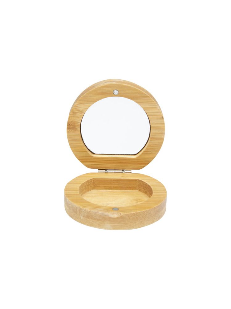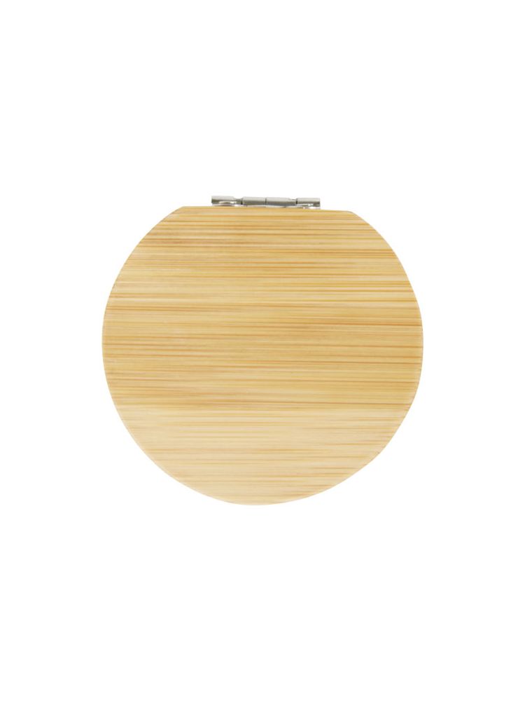 Kompaktowe kieszonkowe lusterko z bambusa do codziennej pielęgnacji skóry lub makijażu. Na dole lustra znajduje się mała komora na drobne akcesoria. Użyty bambus jest pozyskiwany i produkowany zgodnie z normami zrównoważonego rozwoju.