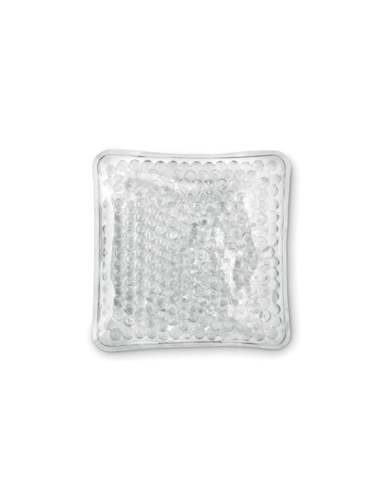 Okład chłodząco-ogrzewający, wypełniony żelowymi kulkami umieszczonymi w przeźroczystym PVC.