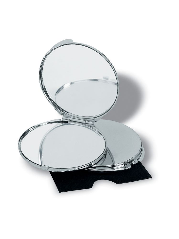 Lusterko do makijażu, zwykłe i powiększające, w welwetowym etui. Chromowany metal.