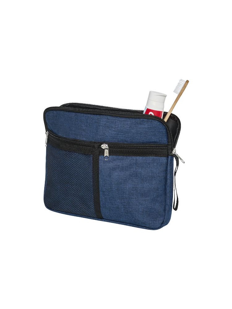 Kosmetyczka z przegrodą główną w kolorze melanżowym zasuwaną na zamek. Posiada dwie przednie małe kieszenie (1 z siateczki i 1 standardowa). Ze względu na rodzaj barwników tkanin, splotów i nadruków mogą występować niewielkie różnice w kolorze rzeczywistego produktu.
