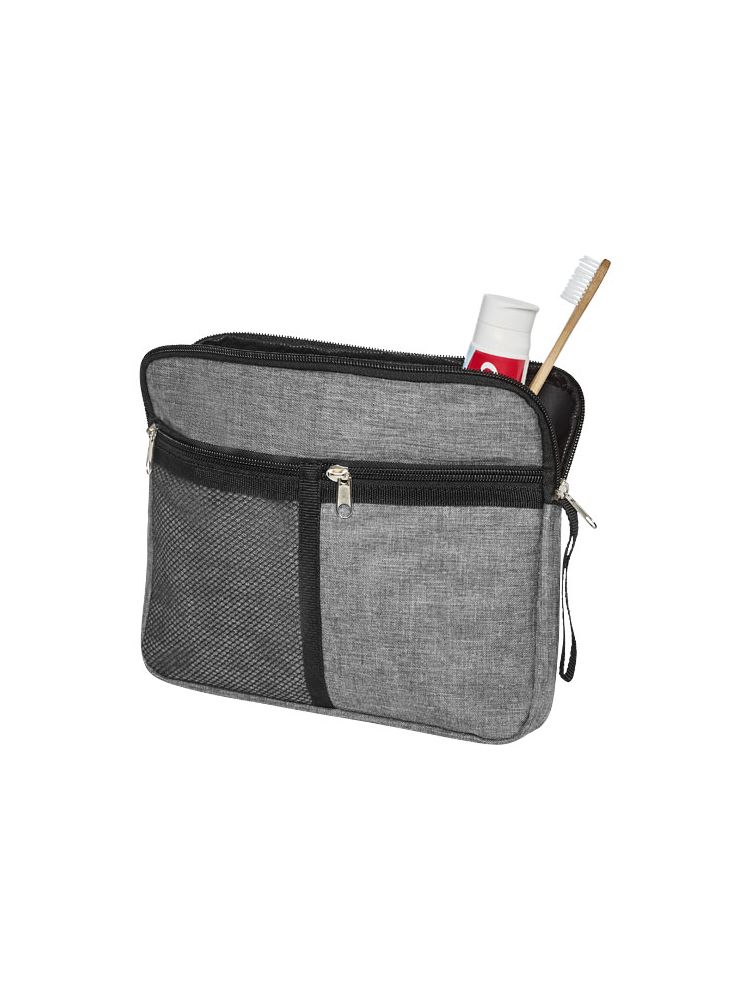 Kosmetyczka z przegrodą główną w kolorze melanżowym zasuwaną na zamek. Posiada dwie przednie małe kieszenie (1 z siateczki i 1 standardowa). Ze względu na rodzaj barwników tkanin, splotów i nadruków mogą występować niewielkie różnice w kolorze rzeczywistego produktu.