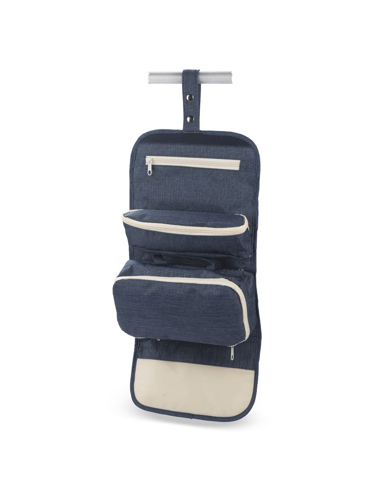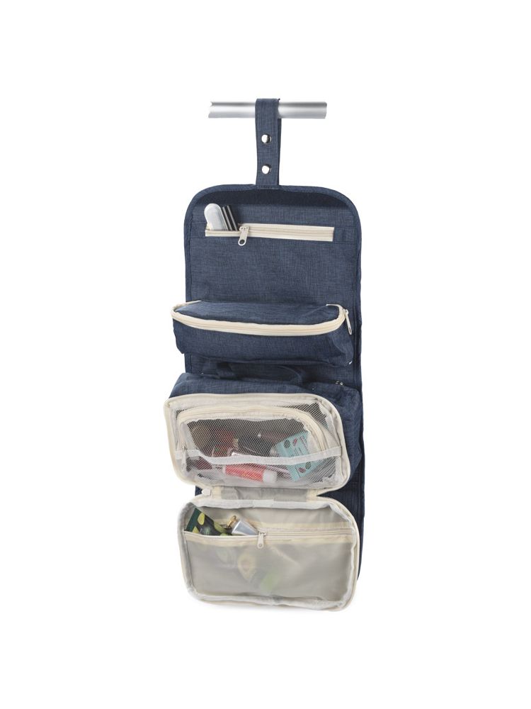 Rozwijana kosmetyczka ROLLI sprawdzi się w każdej podróży. Kosmetyczka wyposażona jest w dwie mniejsze odpinane saszetki, w kieszonkę zamykaną na zamek oraz uchwyt umożliwiający przyczepienie kosmetyczki w łazience np. do wieszaka na ręcznik. Kosmetyczka wykonana z przyjemnego dwunitkowego poliestru 300D.